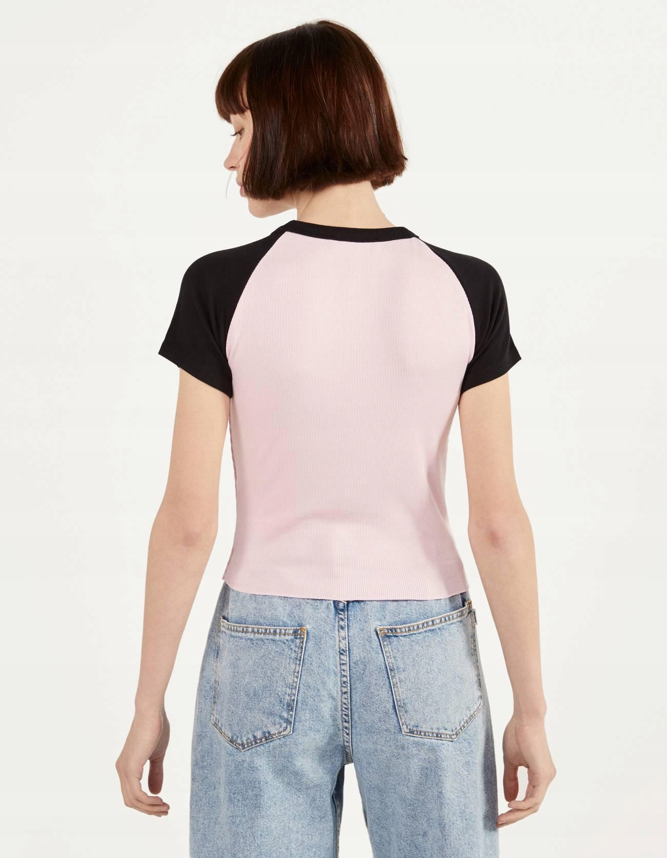 ФУТБОЛКА BERSHKA В РУБРИЧКУ КОНТРАСТНА КРИШКА DDS__XS