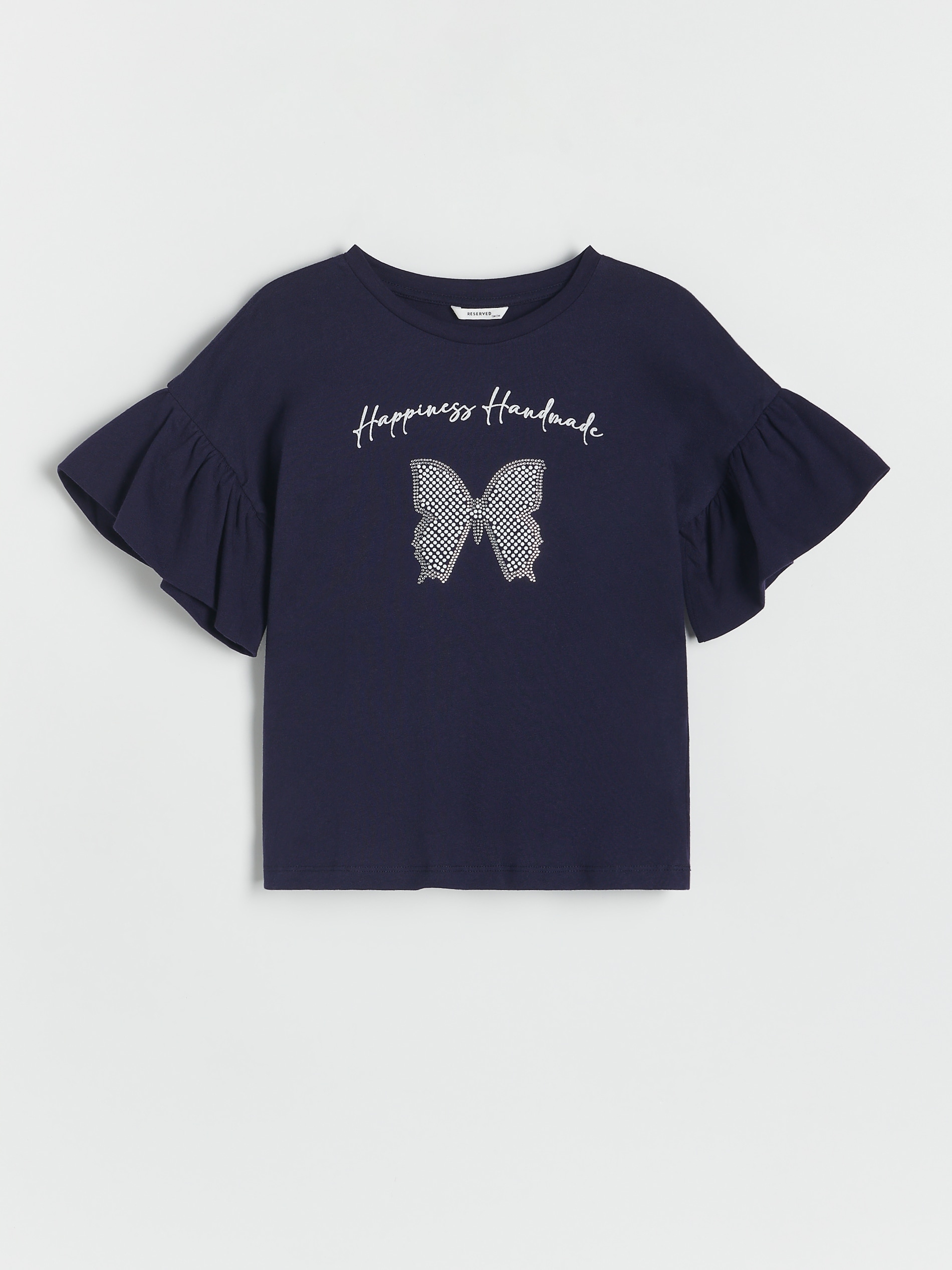 Футболка для дівчинки темно-синя з метеликом – Reserved