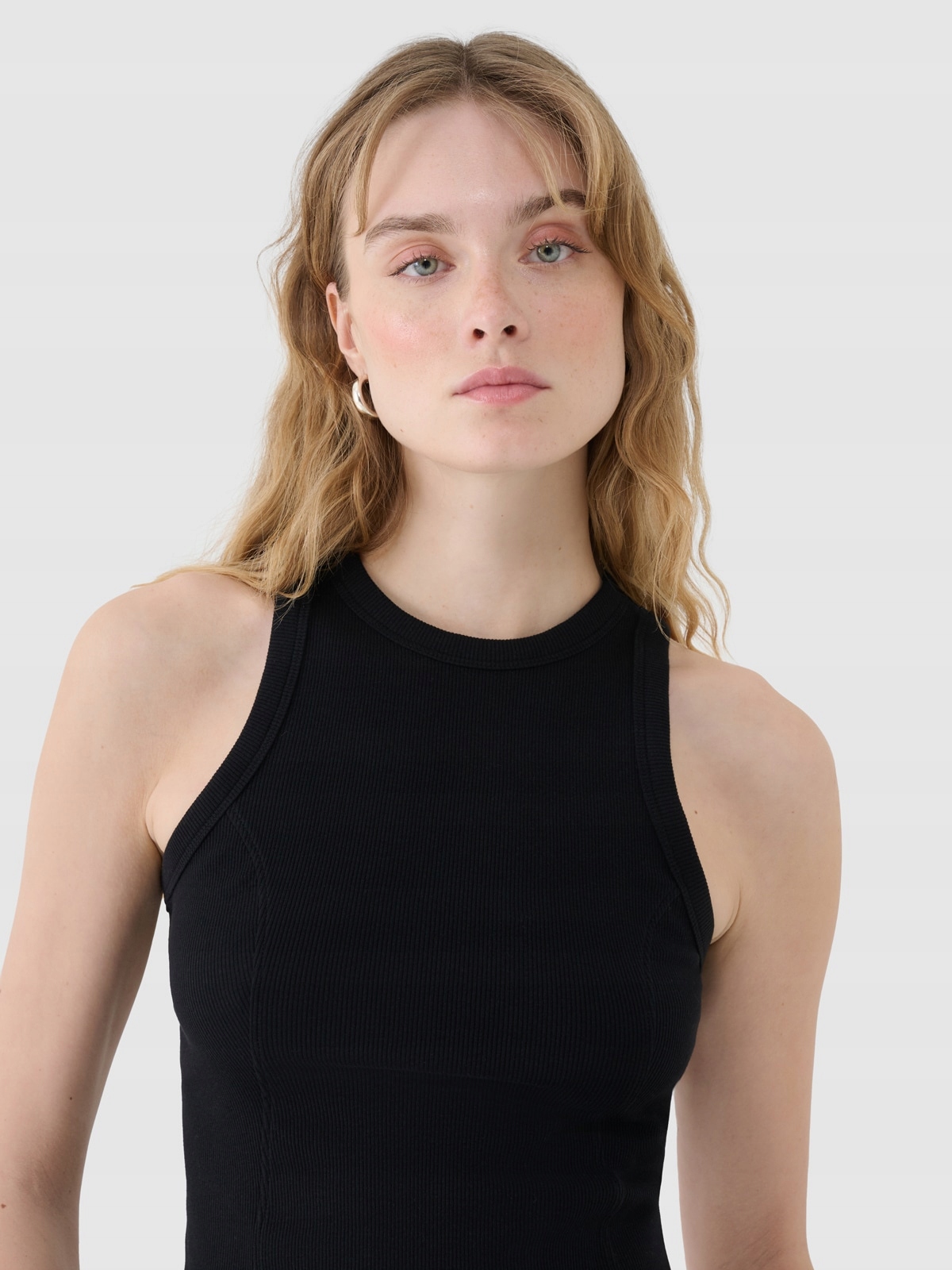 <ул> <ли> вес: 220 г/м² <ли> размерный ряд: XS-XL <ли> крой: тонкий, адаптирующийся к фигуре <ли> изготовлен из 95% хлопка, что делает его мягким, прочным и приятным на ощупь. <ли> эластичный материал благодаря добавлению эластана (5%) <ли> однородные цвета, которые подходят ко многим стилям <ли> эластичная, приятная на ощупь ткань в рубчик <ли> круглый вырез горловины с легкими ребрышками <ли> более широкие бретелиПродукты бренда 4F отвечают ожиданиям самых требовательных людей. Это возможно, поскольку они характеризуются высоким качеством, что выражается как в комфорте, так и в функциональности.