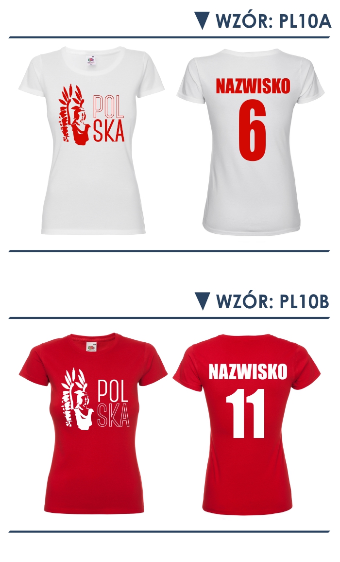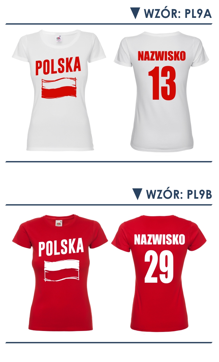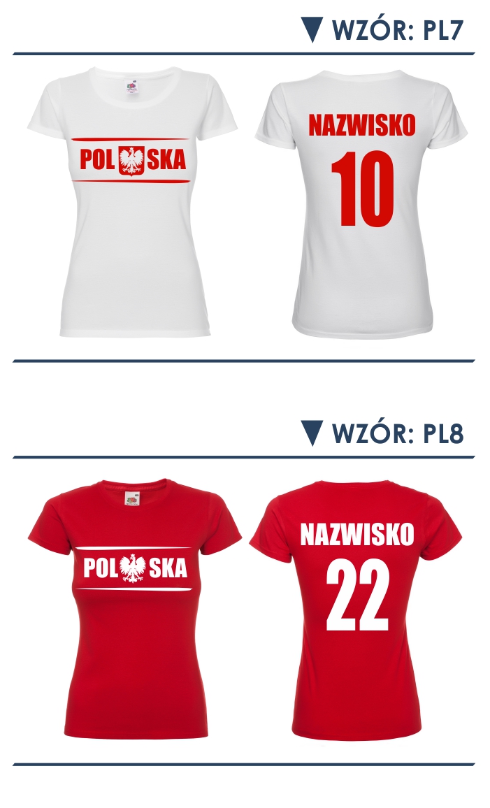 Фанские футболки женского кроя с любой фамилией, именем, ником и номером - футболка на матч сборной Польши.