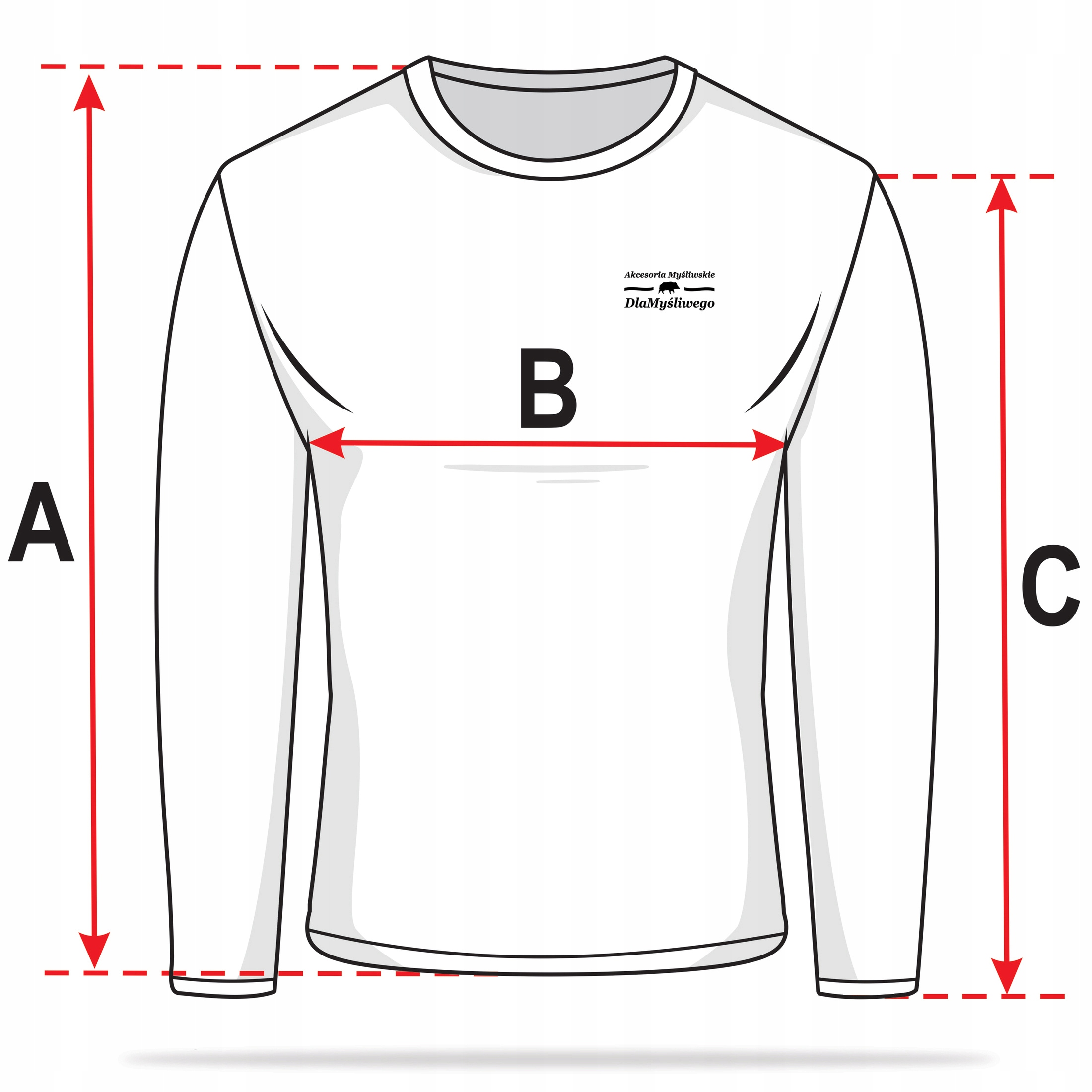 A - длина / B - ширина подмышки / C - длина рукава