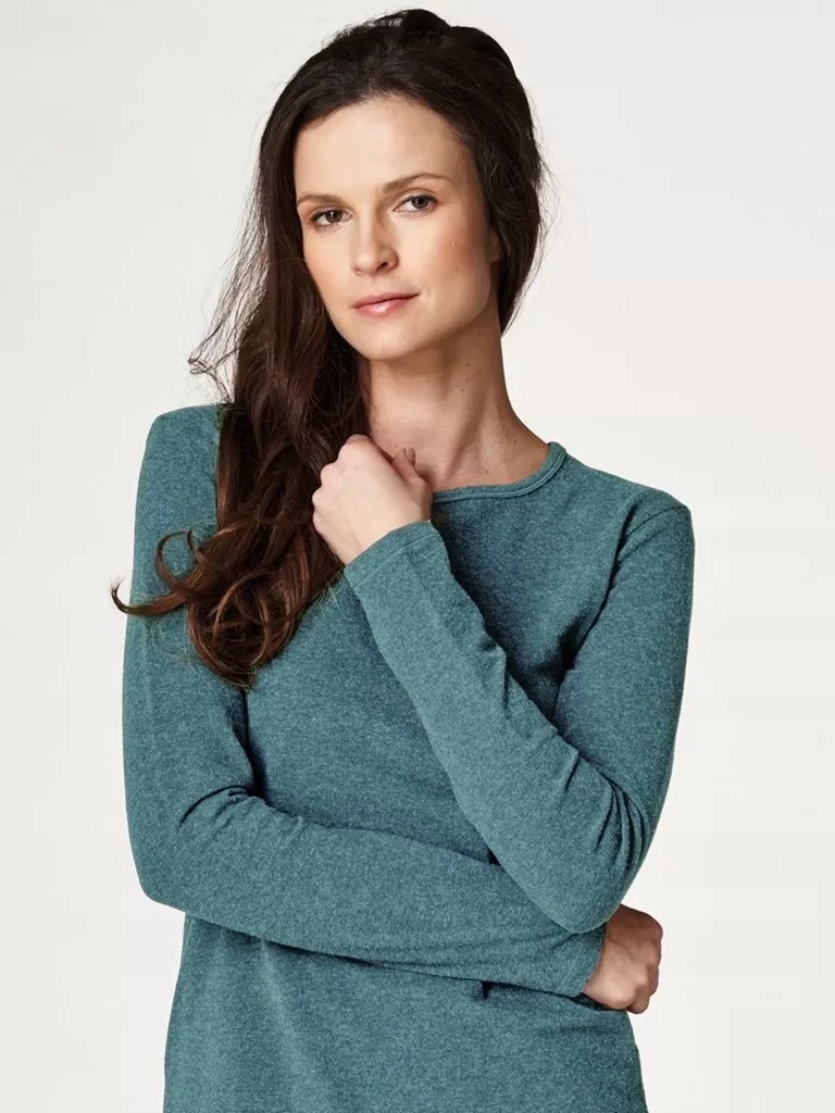 Супер теплая женская футболка из серии Hot Touch с длинными рукавами. Изготовлен из хлопкового трикотажа, с начесом с обеих сторон. Меланжевый узор.