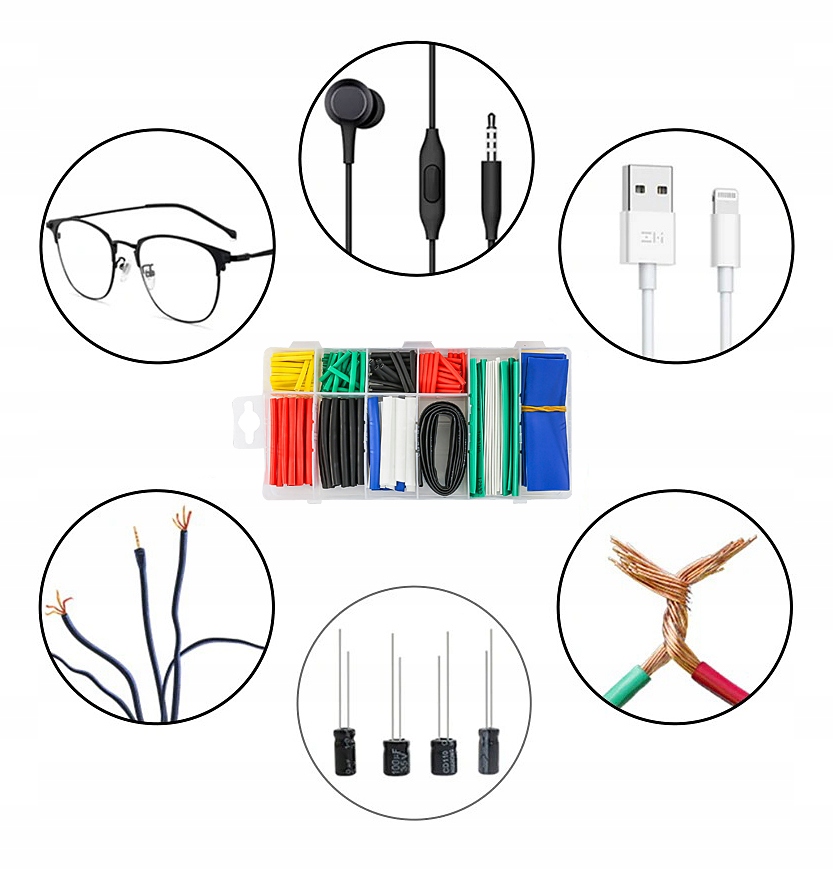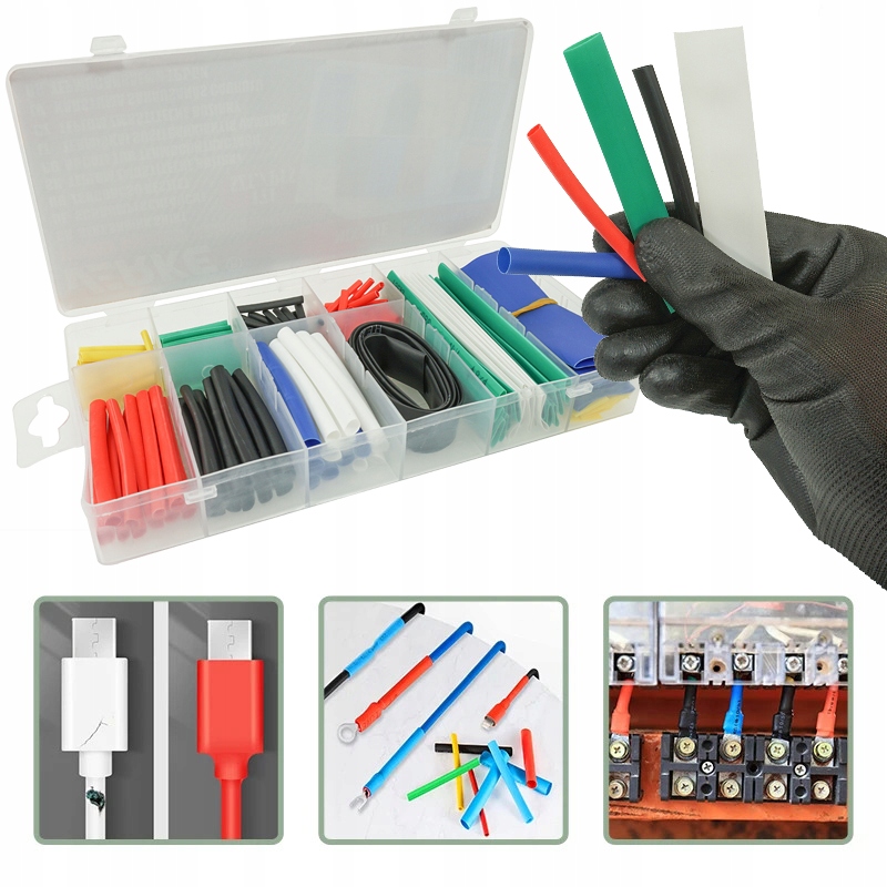 - Широкое применение: Набор идеально подходит для работы с электрическими кабелями, кабелями, а также для ремонта, уплотнений, защиты проводов от изгиба или ремонта незначительных повреждений.