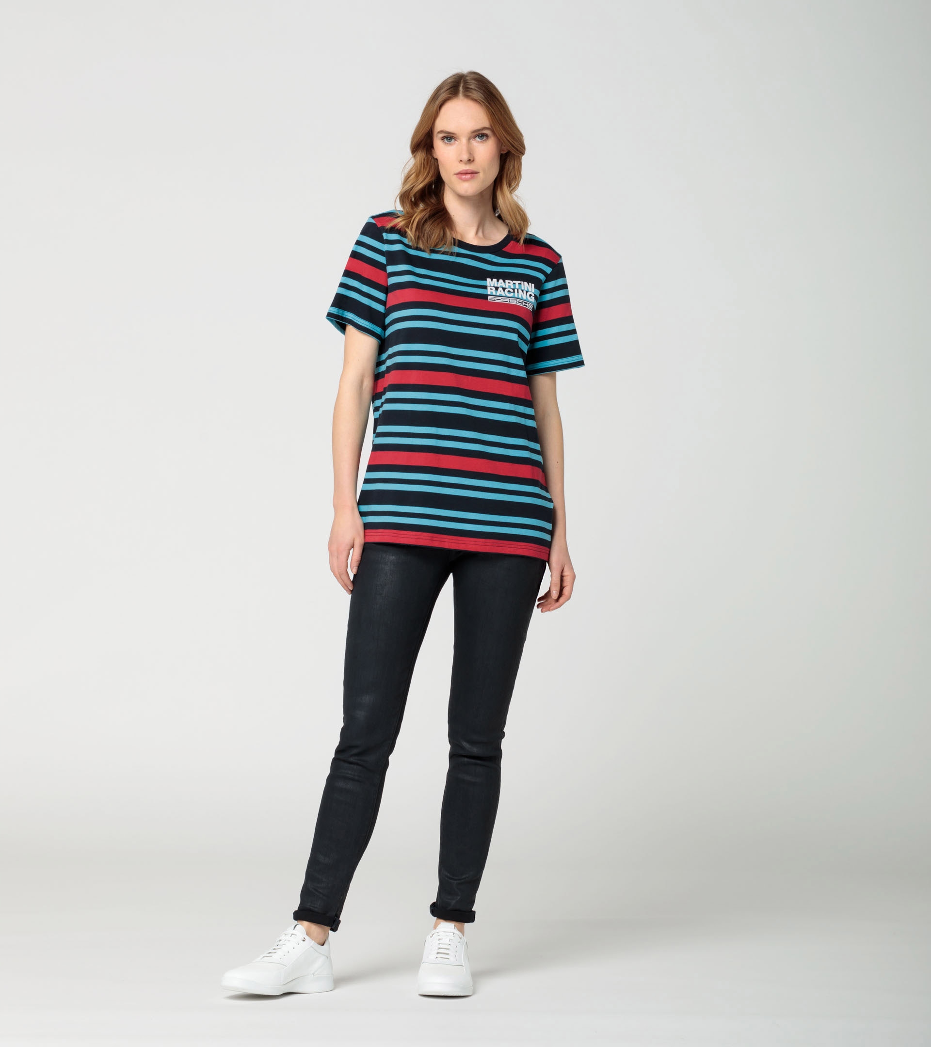 Автоспорт подходит для повседневного использования: футболка из популярной коллекции MARTINI RACING® хорошо смотрится на любой случай. Помимо культового полосатого рисунка, на передней части модели имеется стильный логотип коллекции, а на задней – логотип Porsche. Короче говоря: идеальная футболка на каждый день для каждого любителя гонок!