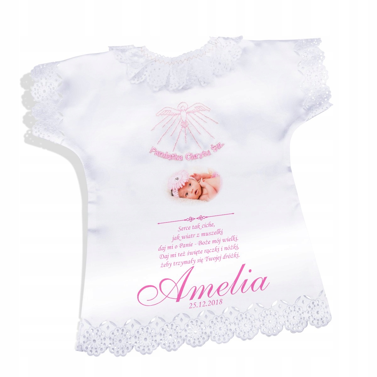 Футболка с крестильным халатом, розовый атлас, Сувенир Крещение с фото