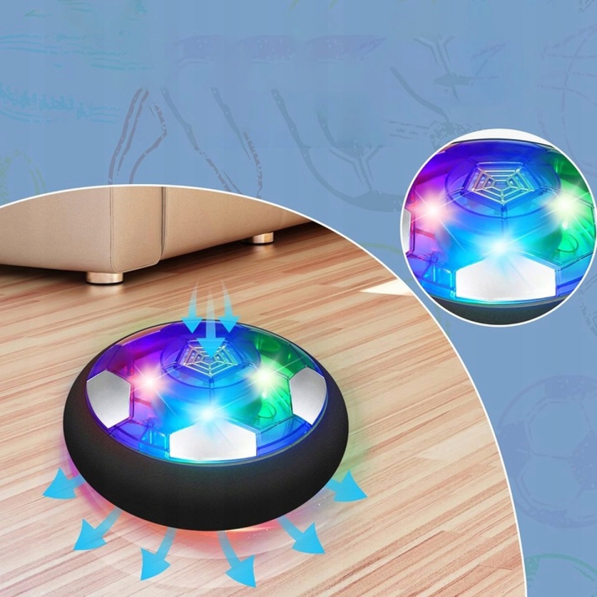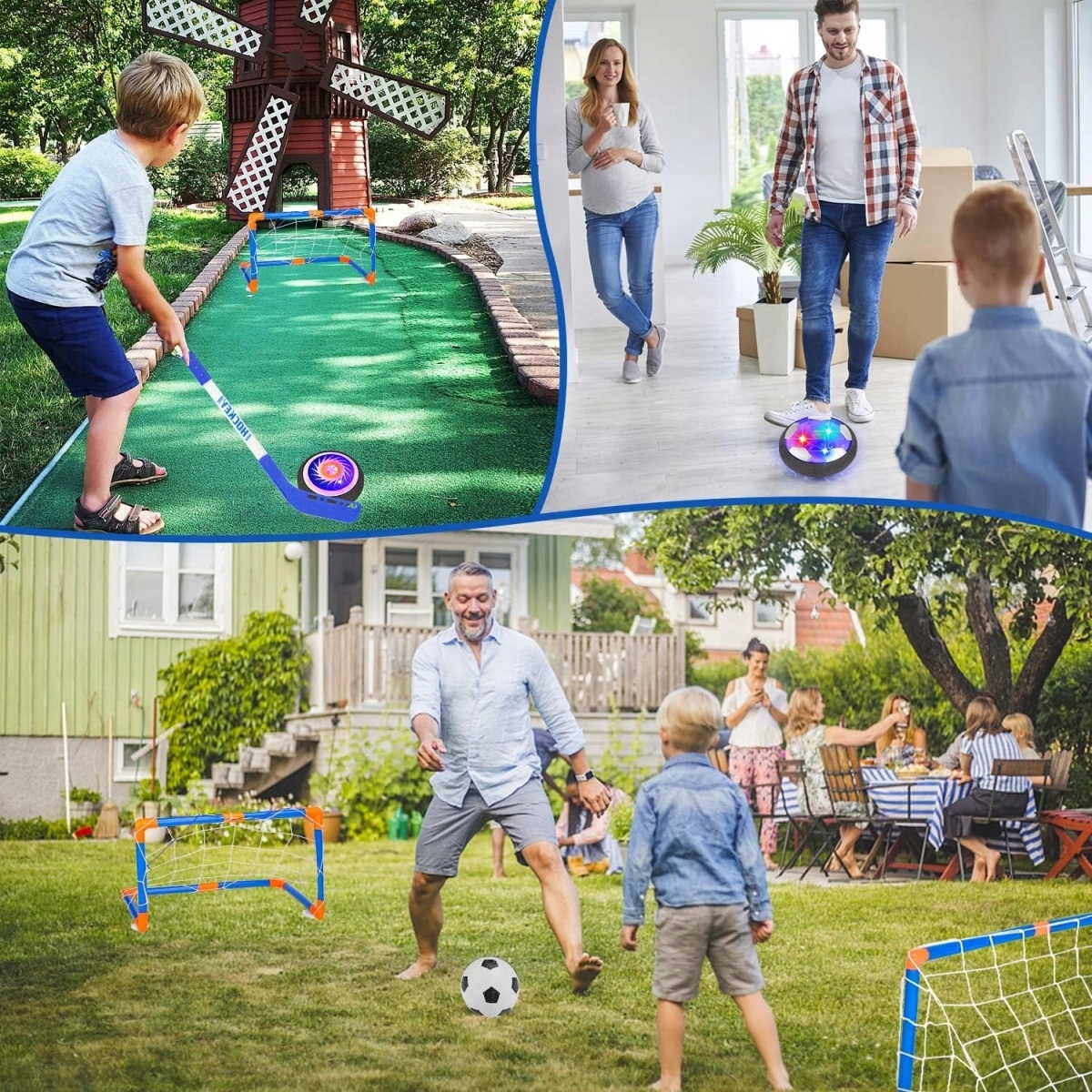 🔮 Набор содержит подвесной хоккейный альбом, подвесной футбол и надувный мяч. Идеально подходит для дня и ночи. Hoverball Ball оснащен встроенным вращающимся двигателем, так что вы можете легко скользить по любой гладкой поверхности.