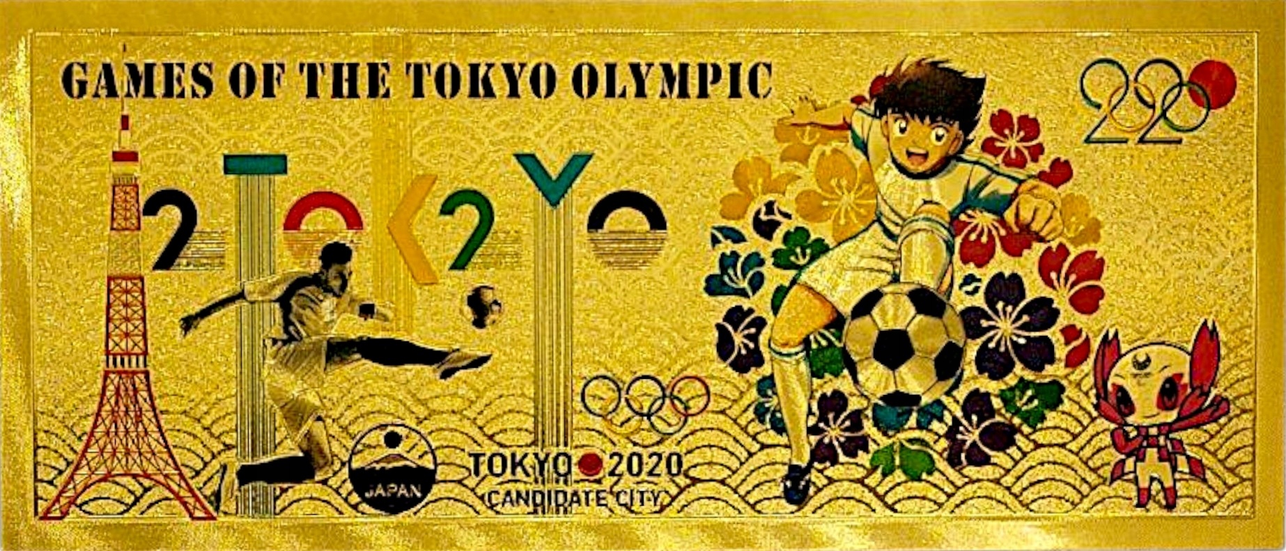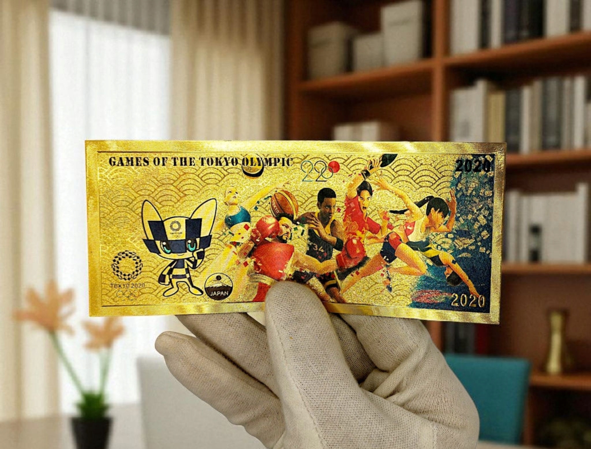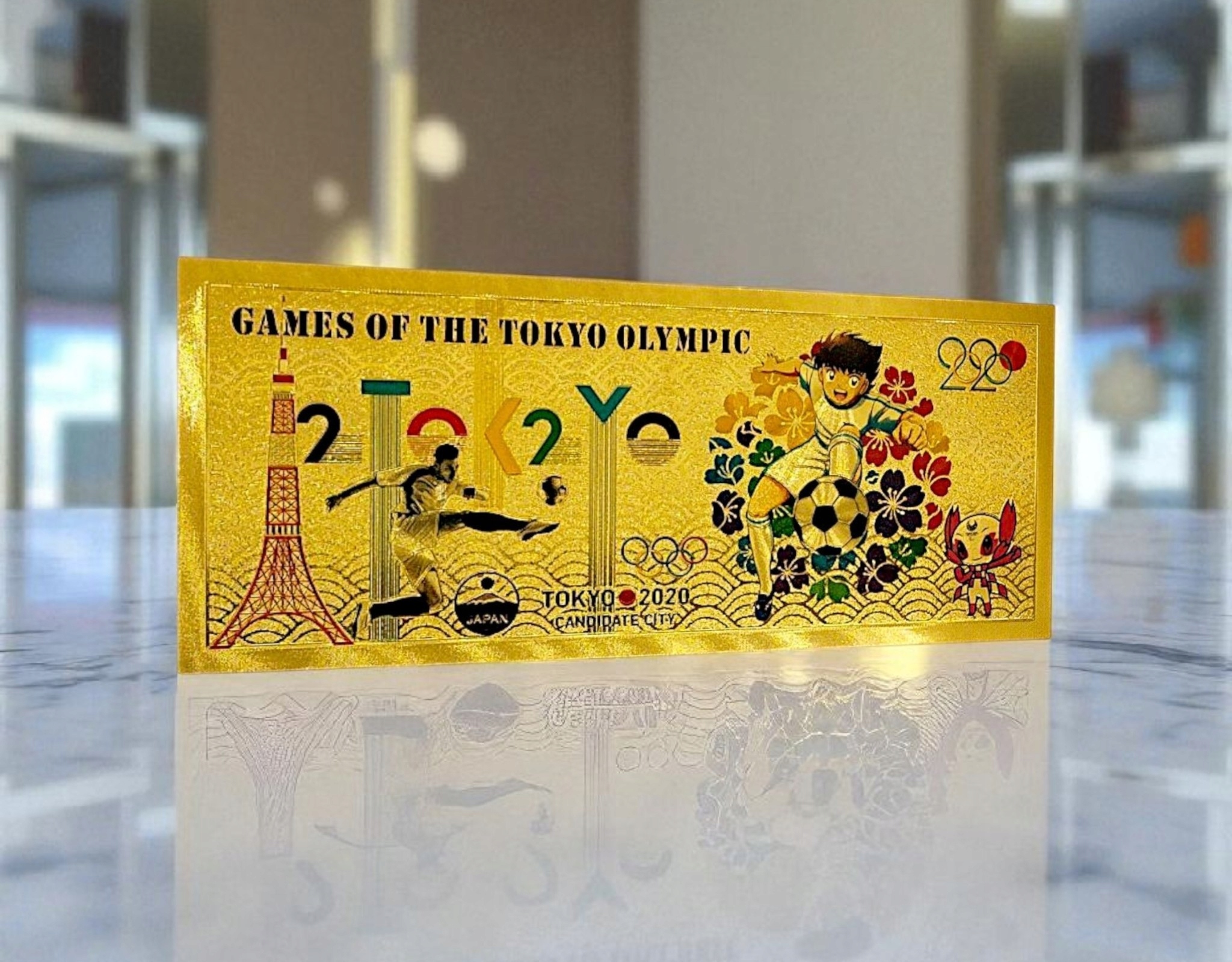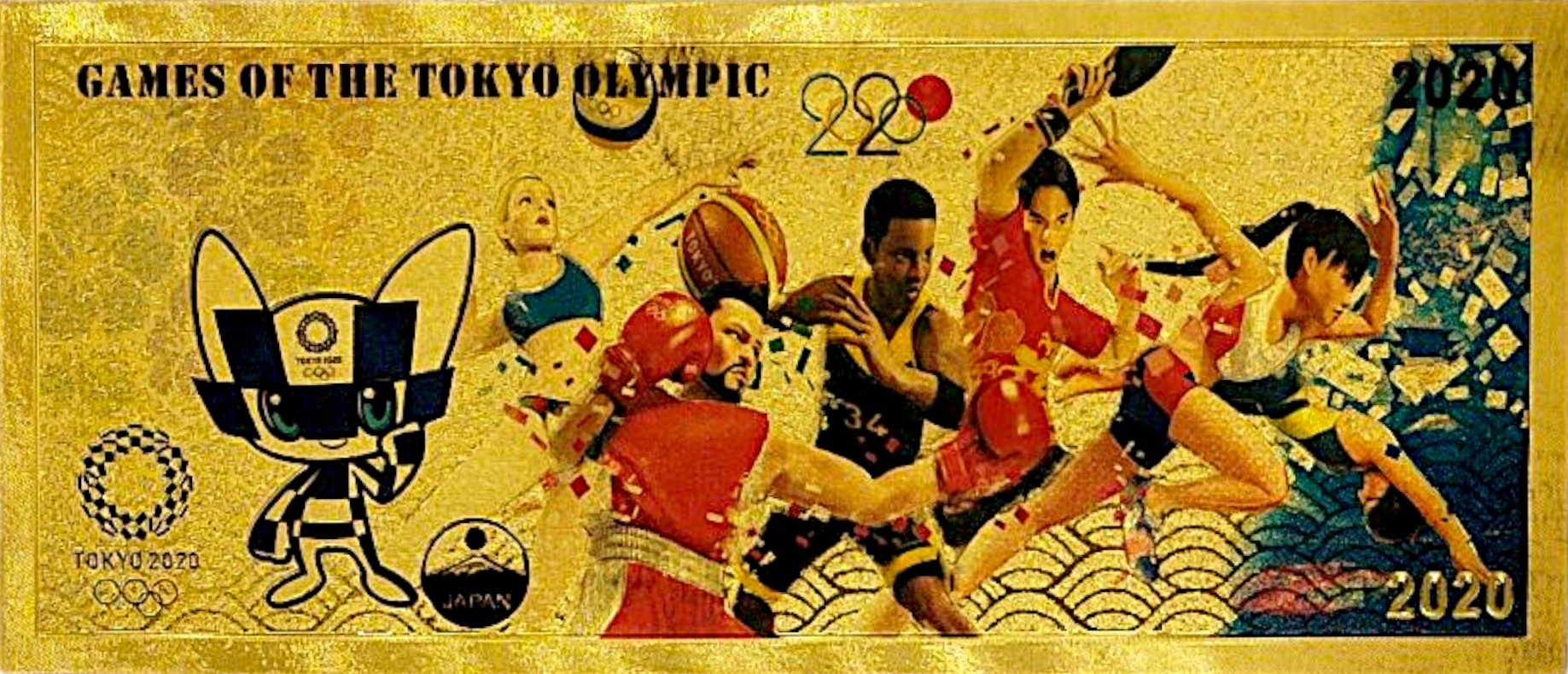 Коллекционная банкнота из ПВХ с изображением Олимпийских игр 2020 года в Токио.