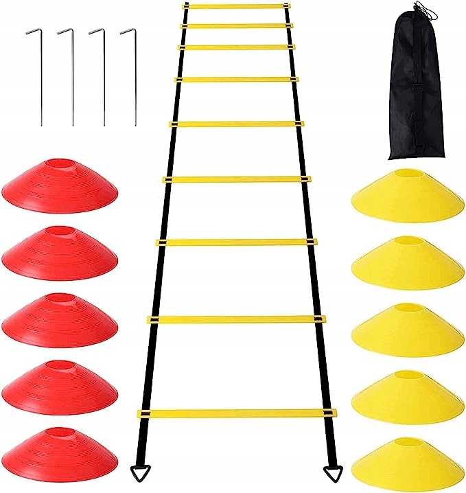 - Каждый комплект содержит 12 -захлаженную инвертированную лестницу, 12 футбольных конусов (6 желтых, 6 оранжевых), 4 стальных батончика для дополнительной стабильности и изношенного для износа. усилие.