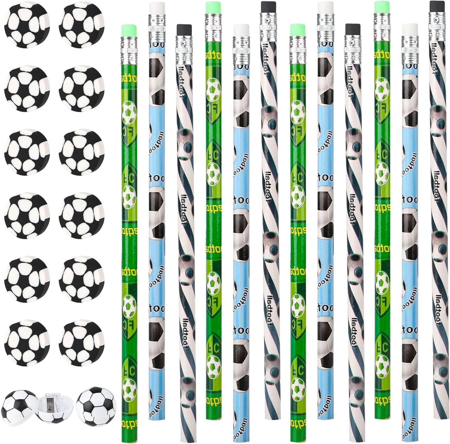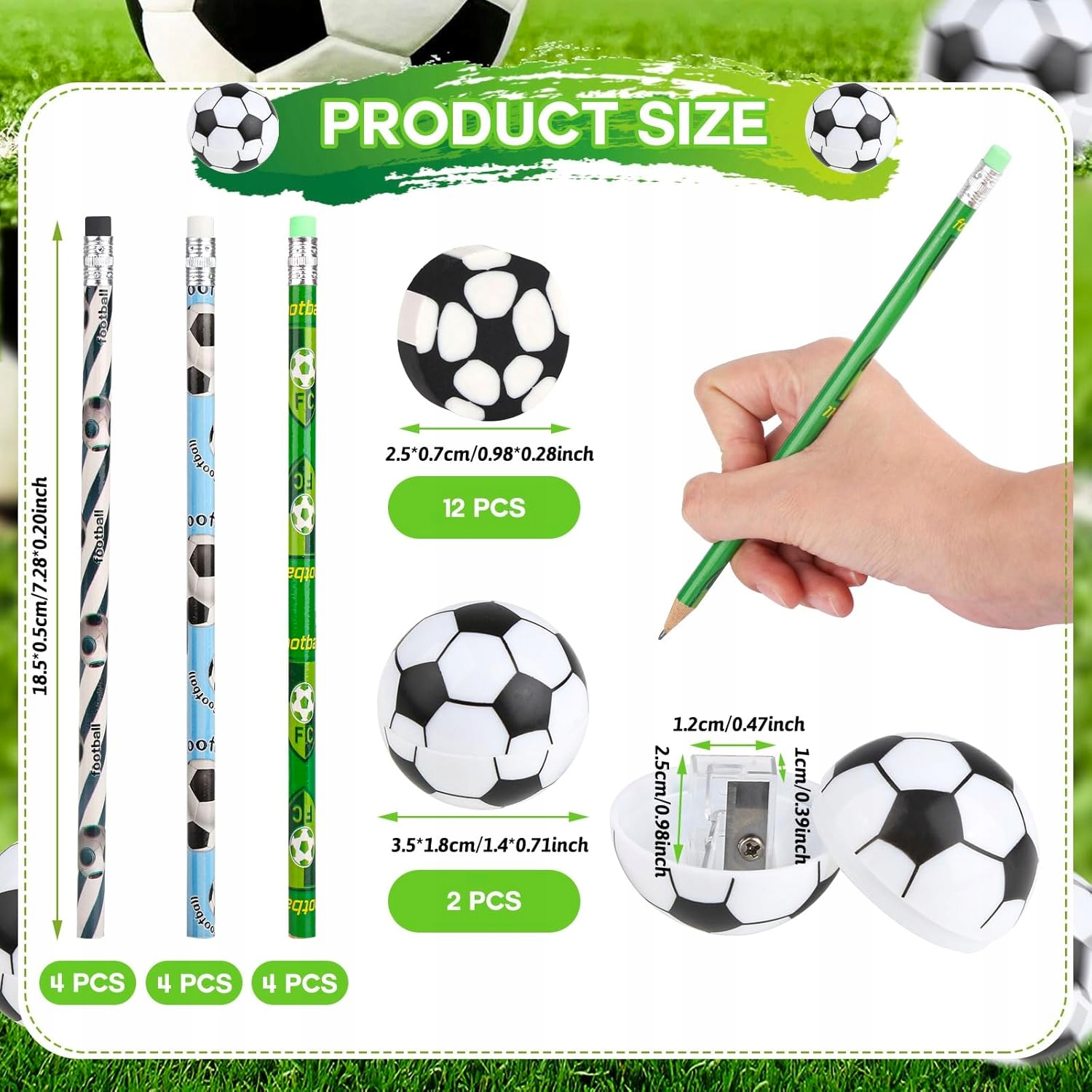 ФУТБОЛЬНЫЙ НАБОР 12 ГРАФИТОВЫХ КАРАНДАШЕЙ 12 ЛАСТИКОВ 2 ТОЧИЛКИ