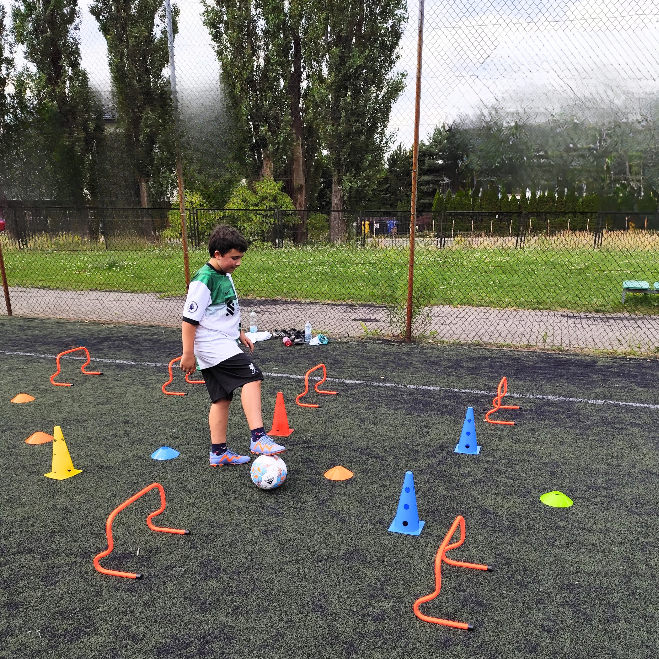 С помощью лестницы можно построить точность и динамику движений. Тренировочные барьеры позволяют увеличить мощность и контролировать движение при низком пороге высоты (30 см), а конусы помогают создавать динамичные полосы препятствий.