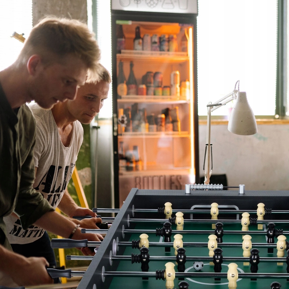 Вы ищете развлечение, которое объединяет детей и взрослых и в то же время идеально подходит для дома, офиса, компании или зоны отдыха? Этот настольный футбол длиной ок. 140 см – идеальное решение как для дома, так и для офиса. Каждый матч — это порция смеха, адреналина и здоровой конкуренции, которая эффективно отвлекает от повседневных обязанностей.