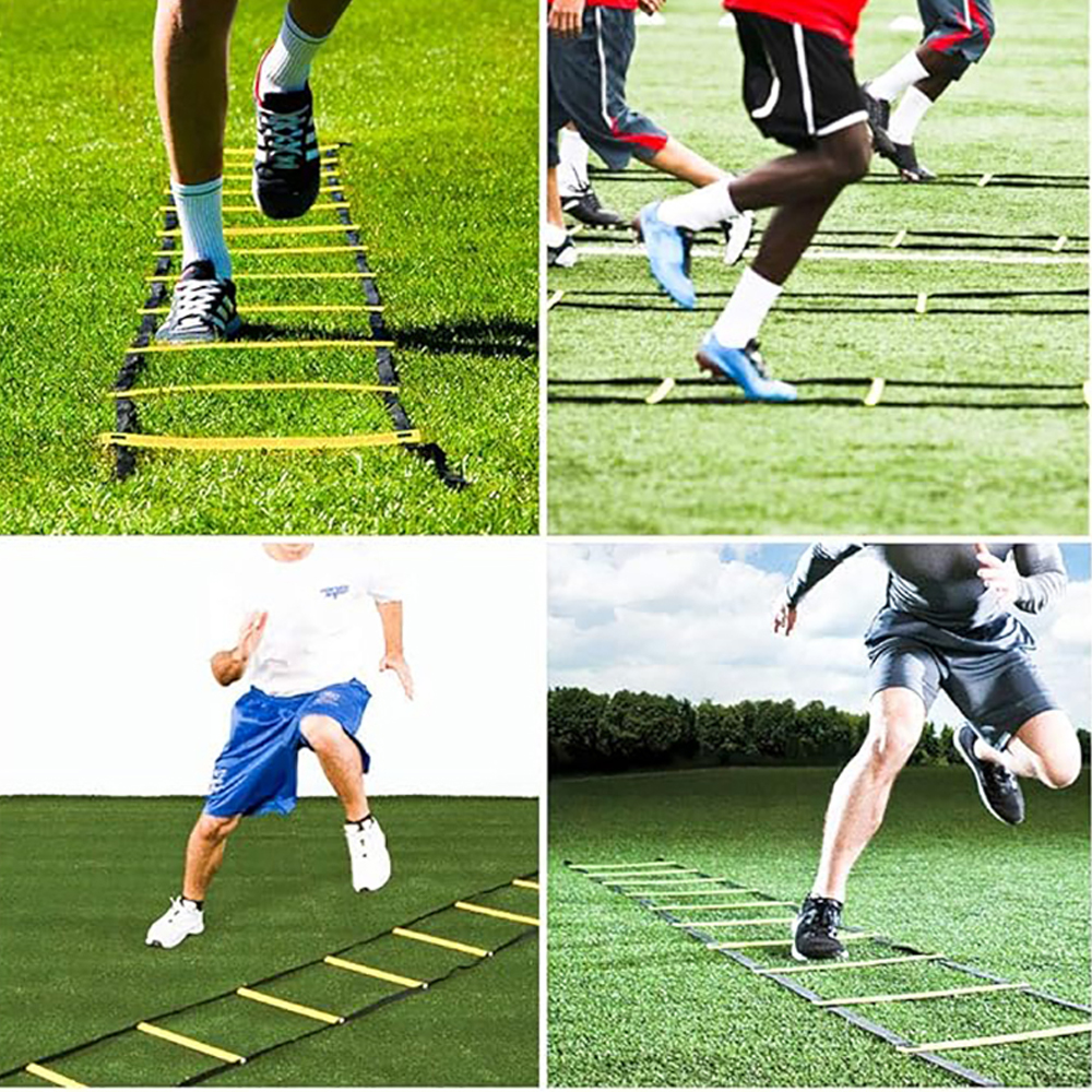 - Наше футбольное тренировочное оборудование включает в себя тренировочную лестницу 20 футов длиной, 12 желтых дисковых конусов, 1 зонт сопротивления, 4 шипа для заземления и 1 сумка для хранения. Изделие состоит из высококачественного полипропиленового материала + плотного тканого мешка.