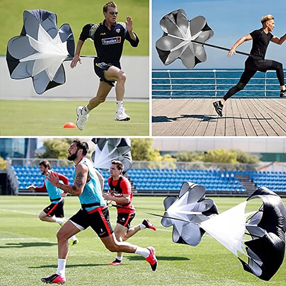 - Наша улучшенная конструкция бегового парашюта обеспечивает сильное сопротивление ветру, что увеличивает очень эффективно развивать скорость спринта.