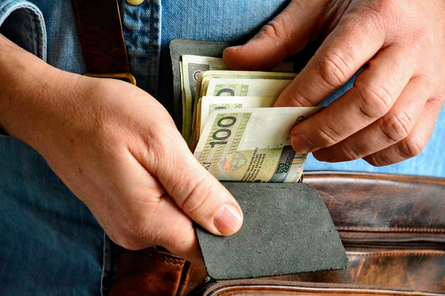В футляре помещается до дюжины банкнот злотых.