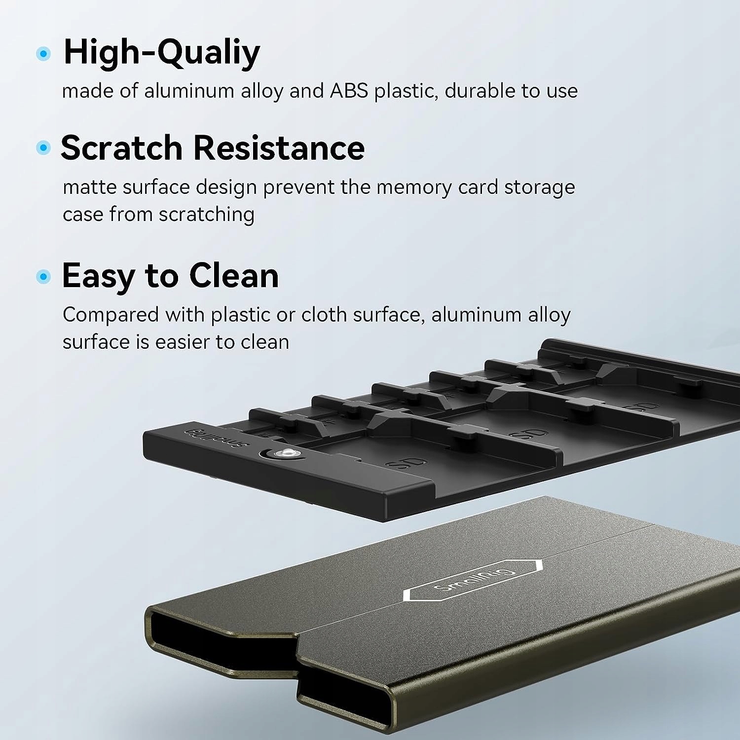 В нем можно хранить три карты SD и две карты Micro SD, что удобно для хранения карт памяти камер, экшн-камер, дронов и мобильных телефонов.