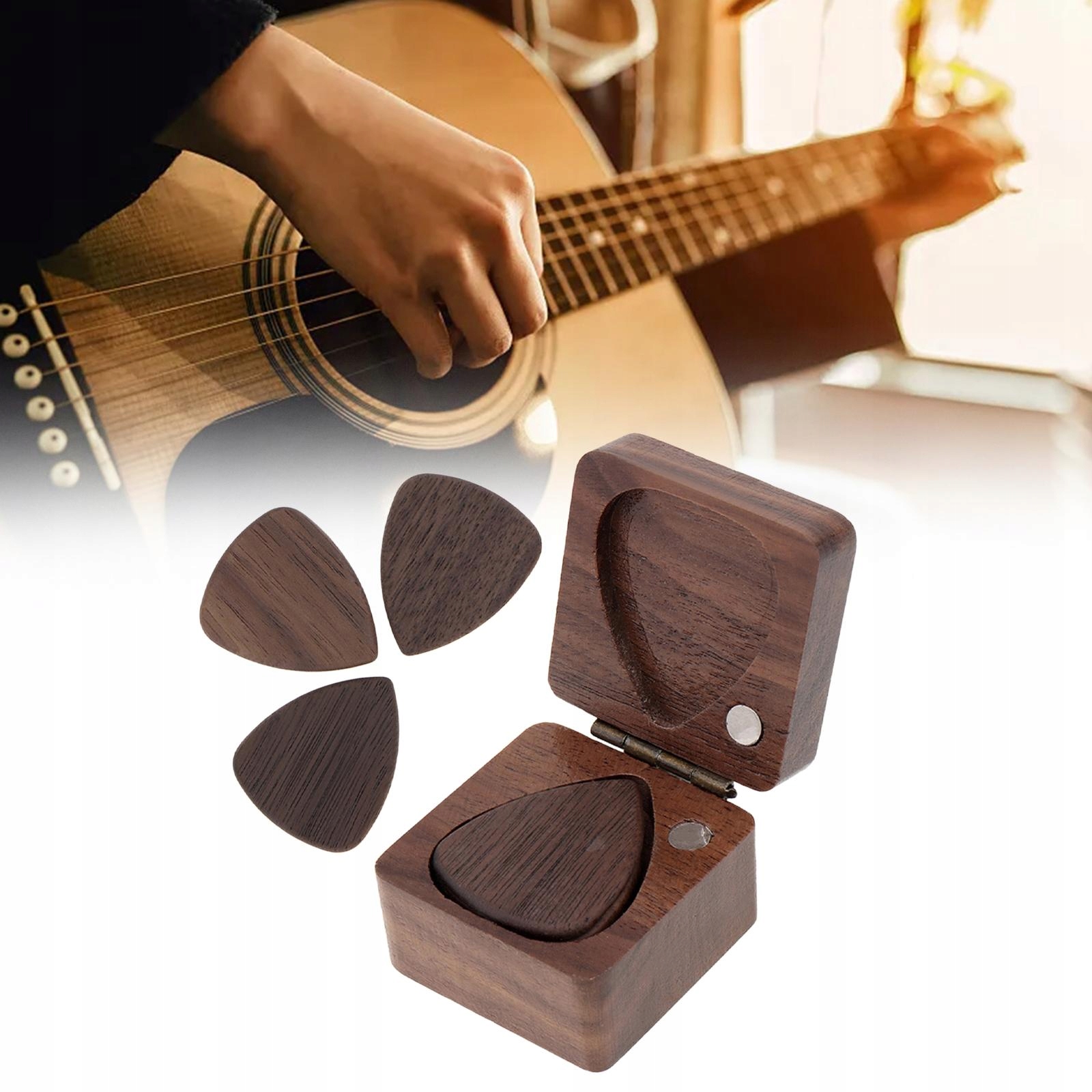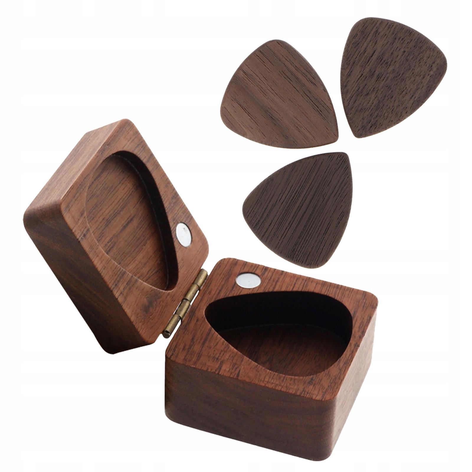 Чехол для медиатора из орехового дерева для гитариста-музыканта, подарочный контейнер с 3 медиаторами