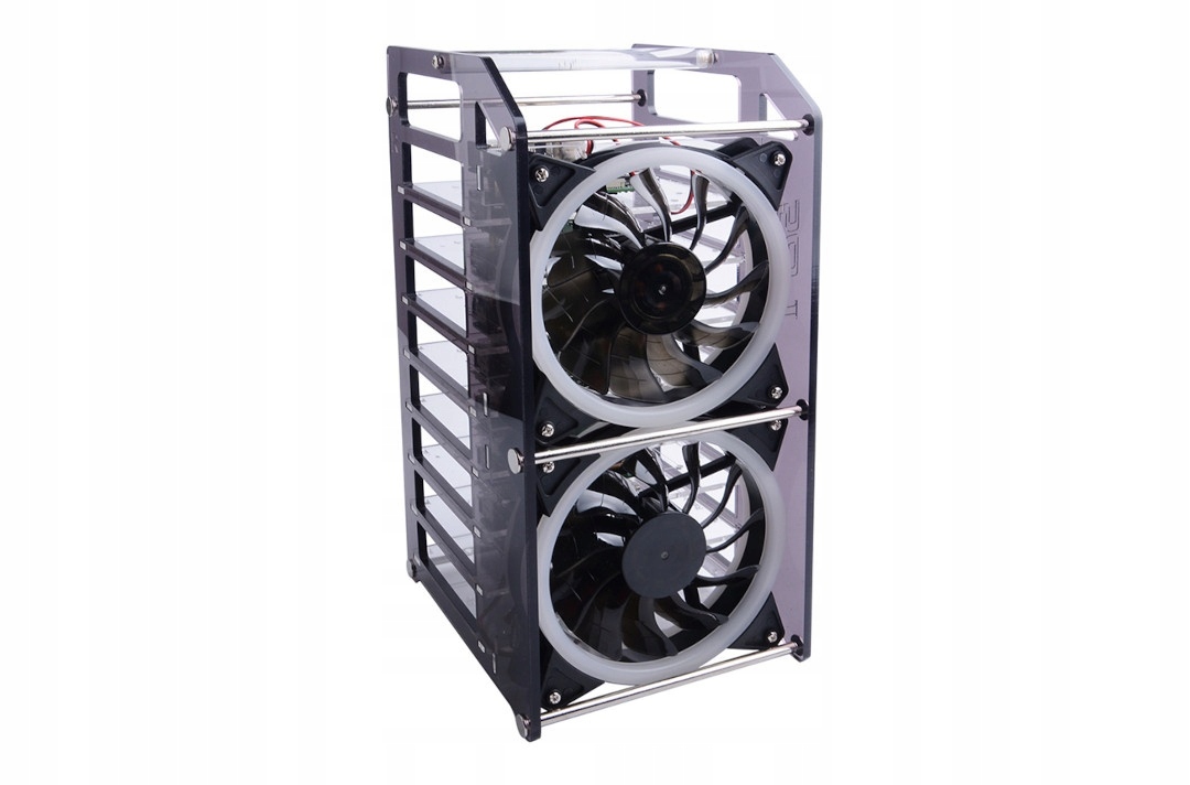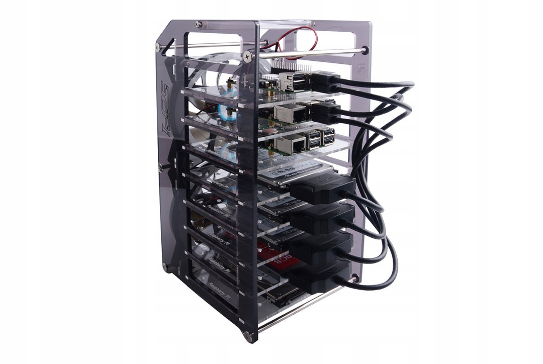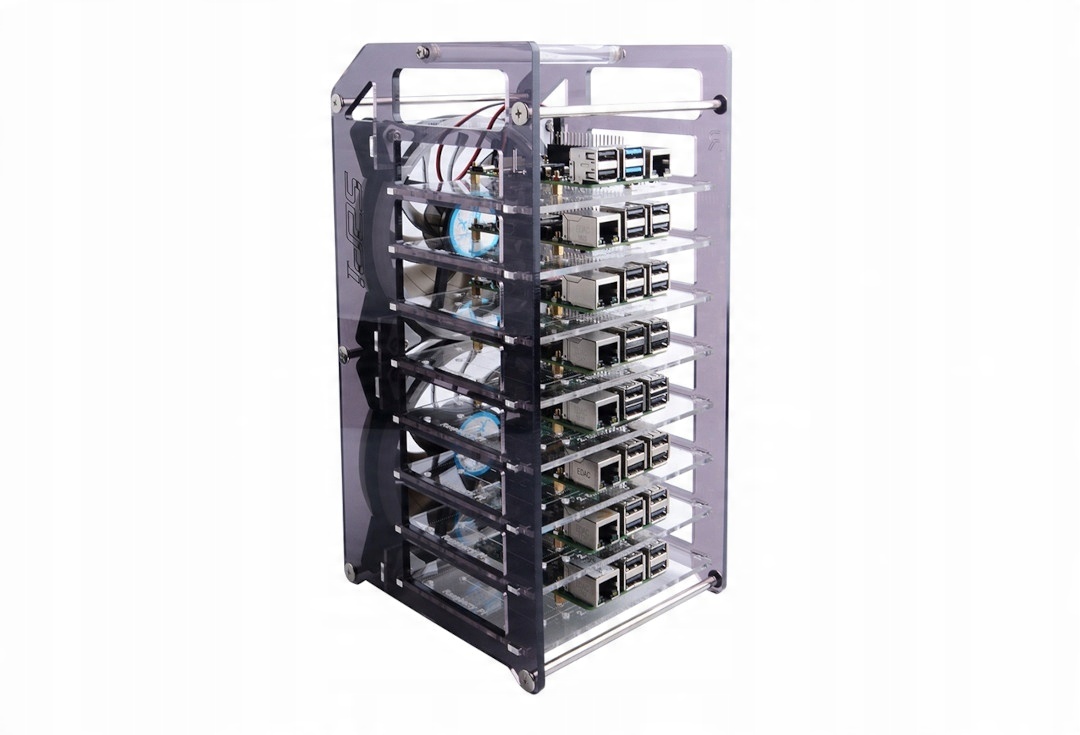 Восьмислойный акриловый корпус оснащен двумя вентиляторами RGB, обеспечивающими лучший отвод тепла от кластера или NAS-сервера. Корпус предназначен для миникомпьютеров Raspberry Pi или Nvidia Jetson Nano. Он позволяет построить кластер, состоящий из 8 Raspberry Pi или 8 Nvidia Jetson Nano, а также NAS-сервера с 8 дисками для Raspberry Pi или Nvidia Jetson Nano.