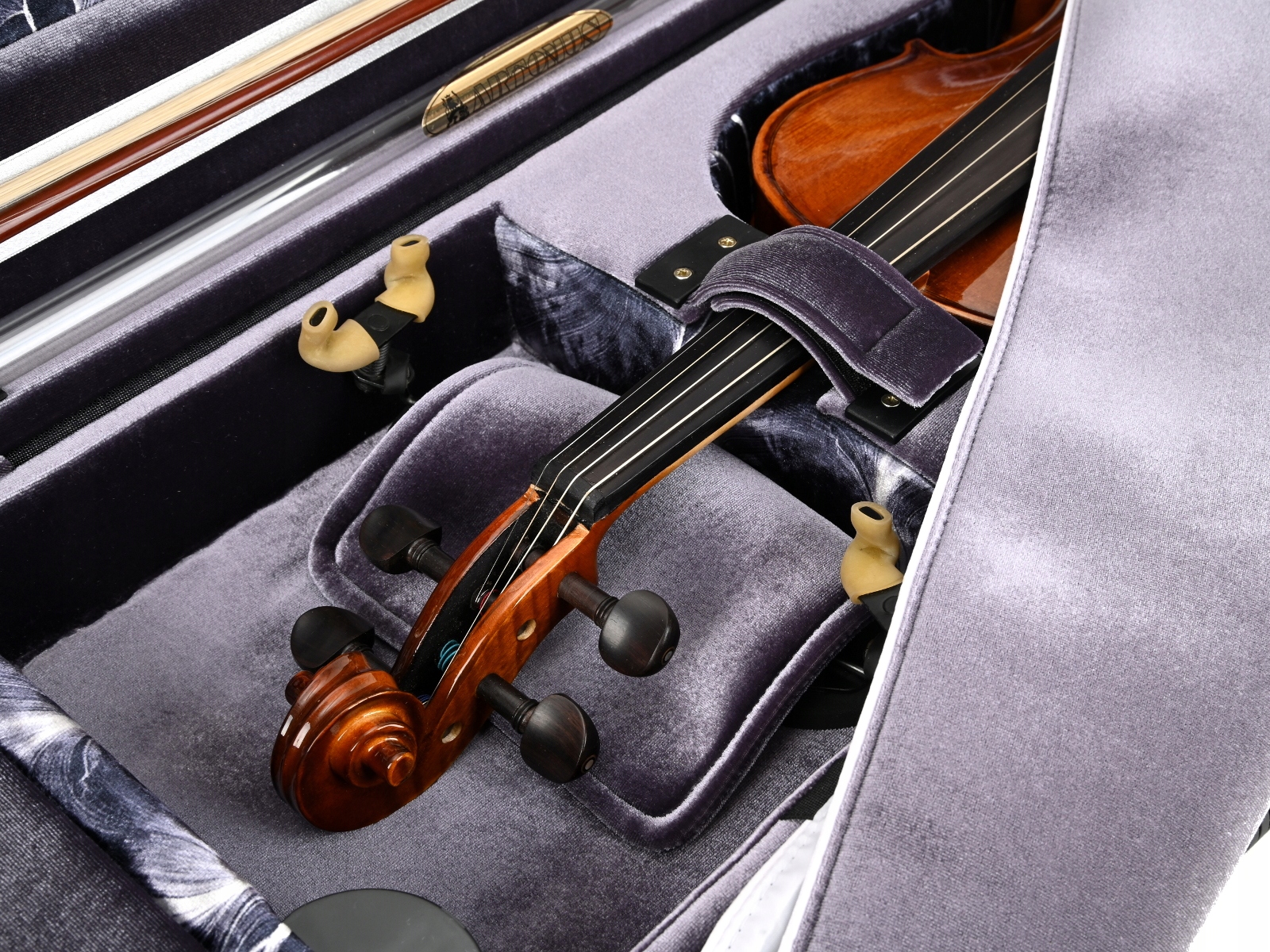 Он создан для людей, ищущих индивидуальность и индивидуальный стиль. Сохраняя все преимущества базовой модели GEESTON, вариант FRESCO отличает корпус оригинальным интерьером. Нежная подкладка из узорчатого и однотонного бархата создает идеальный фон для инструмента. Количество цветов и комбинаций рисунков удовлетворят самые разные вкусы. Такой футляр для скрипки может стать источником вздохов не только для музыкантов.