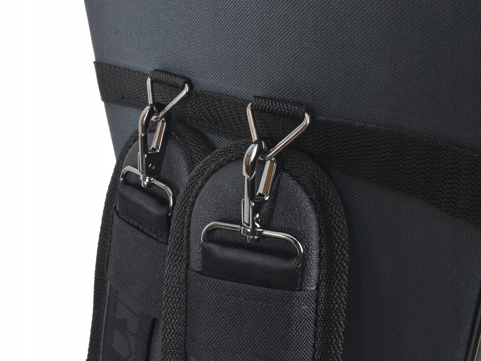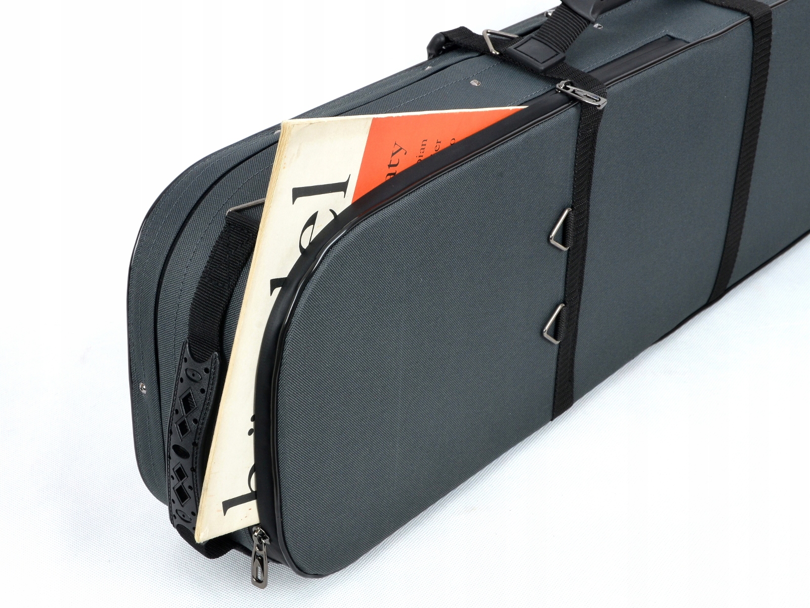Вся серия отличается функциональностью, прочностью и малым весом. Чехлы оснащены водонепроницаемой застежкой-молнией, которая снижает вероятность попадания воды внутрь во время дождя. В футляре для скрипки имеется просторный карман для нот, который не увеличивает ее размер. В этой модели традиционно используется система ручек, которая является оригинальным решением, разработанным нами. Система затрудняет подъем открытого корпуса, тем самым защищая инструмент от случайного падения. Как и большинство производимых нами футляров для скрипок, этот также оснащен увлажнителем воздуха с запасом наполнителей и специальной воды.