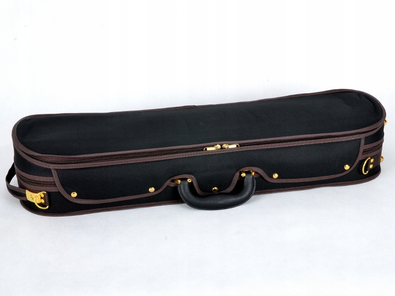 Внешняя часть выполнена из плотной ткани, украшенной элегантной окантовкой. Стилизованная внутренняя часть чехла выполнена из мягкой замши и благородного атласа, украшенного узором пейсли. Внутри есть отделение для ребра и других мелочей, термометр и гигрометр, а также место для четырех луков. Помимо одеяла, в футляр также входит сумка для скрипки. Металлические элементы золотистого цвета, удобная ручка и дополнительный защелкивающийся замок с ключом делают футляр для скрипки элегантным и практичным.