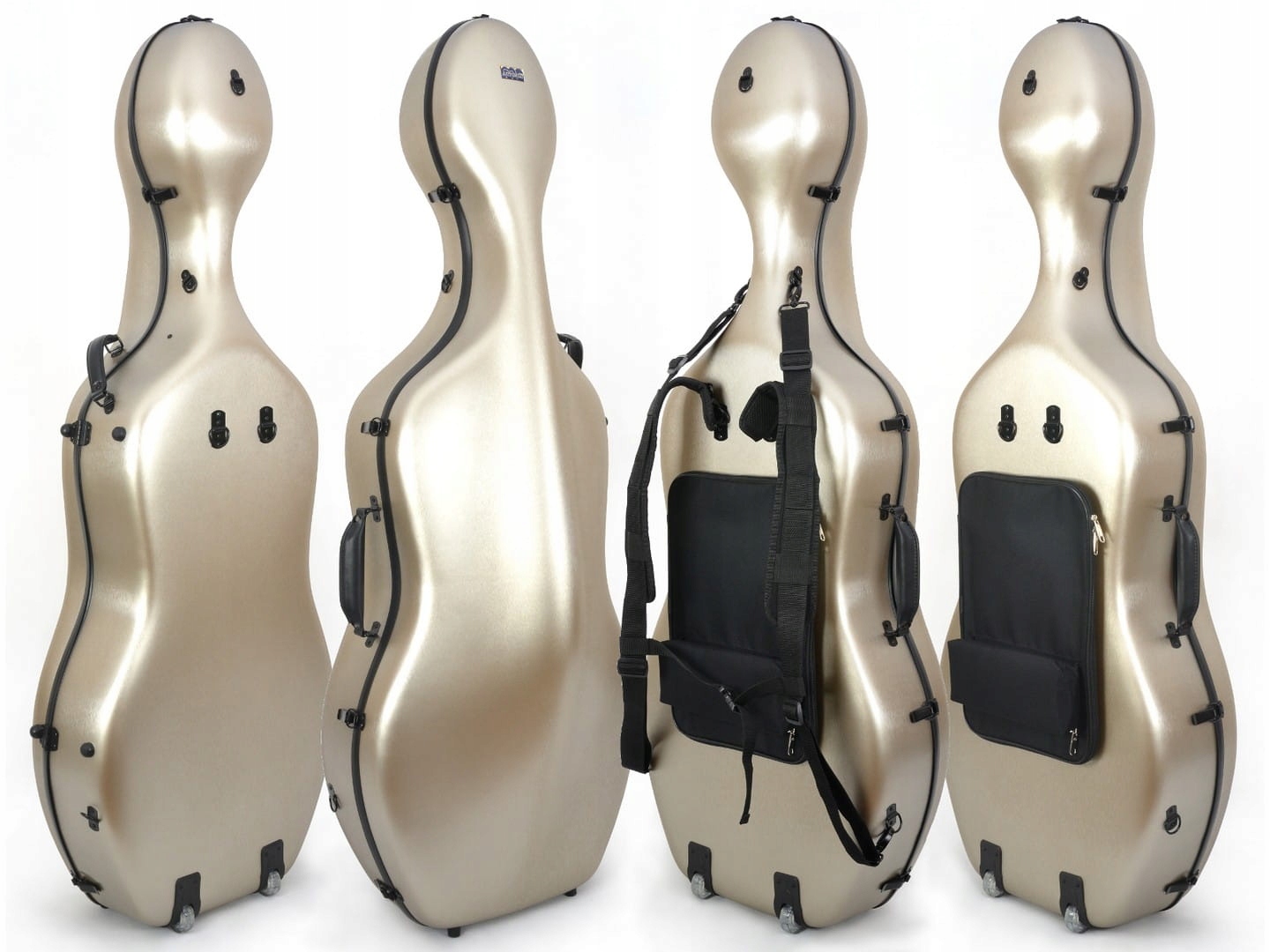 Кроме того, стены имеют слой теплоизоляции. Доступен в широкой цветовой гамме и нескольких типах внешней поверхности. Что отличает предлагаемый футляр для виолончели от других аналогичных, представленных на рынке, так это то, что он оснащен шеститочечной системой крепления ремня. Это делает футляр с инструмент, носимый на спине, более устойчив и кажется еще легче. Как и другие футляры для виолончелей, этот можно катать на колесиках по тротуару. Поверхность корпуса виолончели покрыта слоем поликарбоната, что делает его менее чувствительным к незначительным механическим повреждениям, чем ламинаты из стекла или углеродного волокна. Однако, чтобы сохранить красивую блестящую поверхность, пользователю необходимо ухаживать за корпусом.