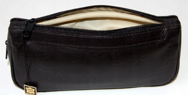 Элегантный футляр для трубки и табака. Изготовлен из натуральной кожи черного цвета. Табачная камера изготовлена из материала, обеспечивающего достаточную влажность и предохраняющего ее от высыхания.
