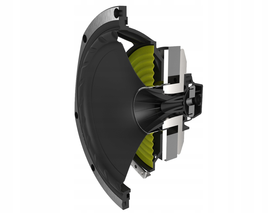 Для устранения нежелательных вибраций, вредных для качества звука, используются как точечный источник, так и дополнительный низкочастотный преобразователь. Установленные в напольных моделях модели построены на жестком литом алюминиевом шасси. Конусы из мультиволоконной бумаги используются для обеспечения естественного звучания средних частот и чистого переходного отклика. Энергия диффузора успешно устраняется за счет ребристого резинового подвеса.