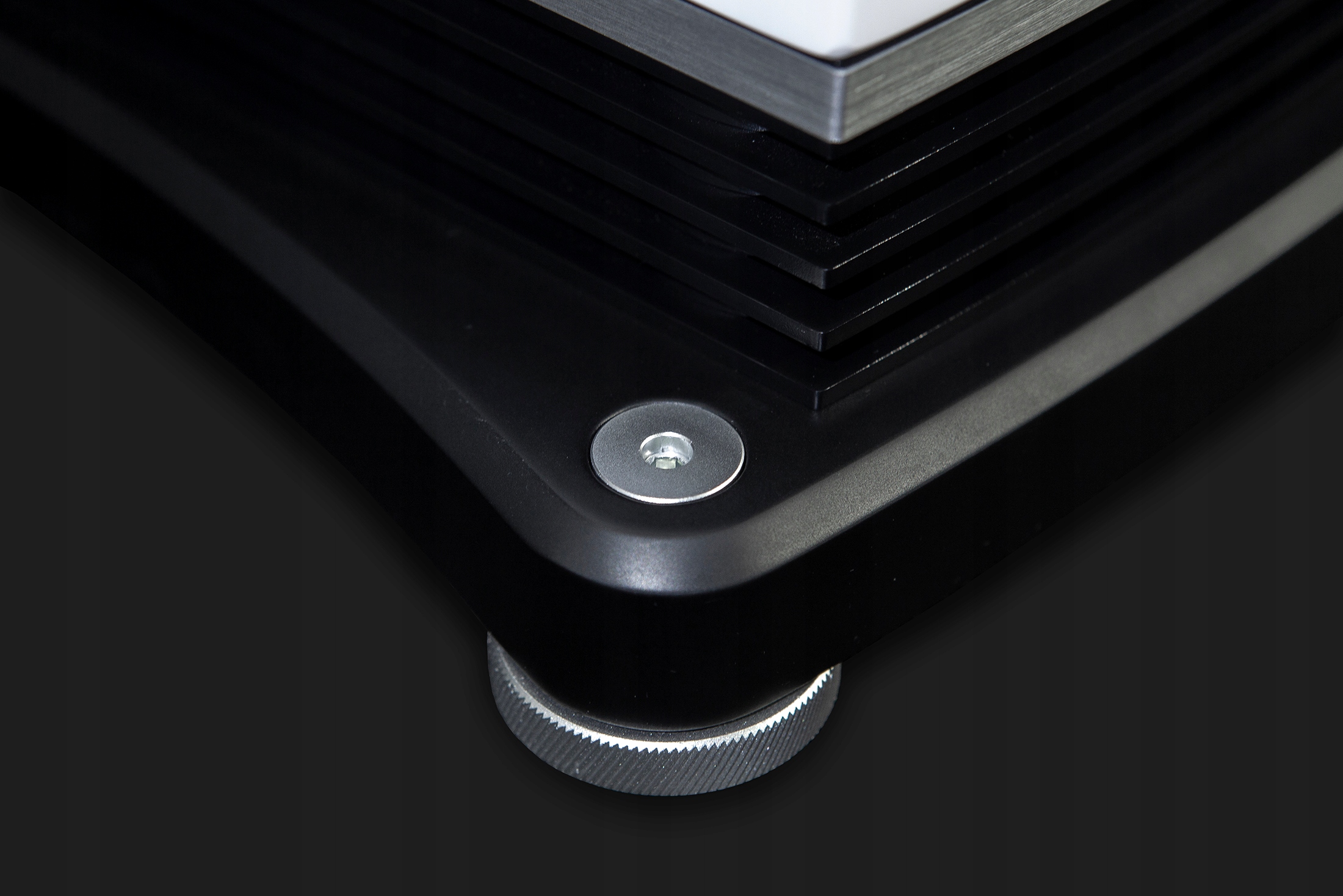 Напольная модель F500 используются жесткие опоры из МДФ с большими шипами, обеспечивающие устойчивость, гарантирующие стабильный бас и еще лучшее стереоизображение. Кроме того, шипы можно регулировать сверху, что облегчает выравнивание колонны. Шкафы изготовлены из натурального шпона и доступны в цвете темного или черного дуба.
