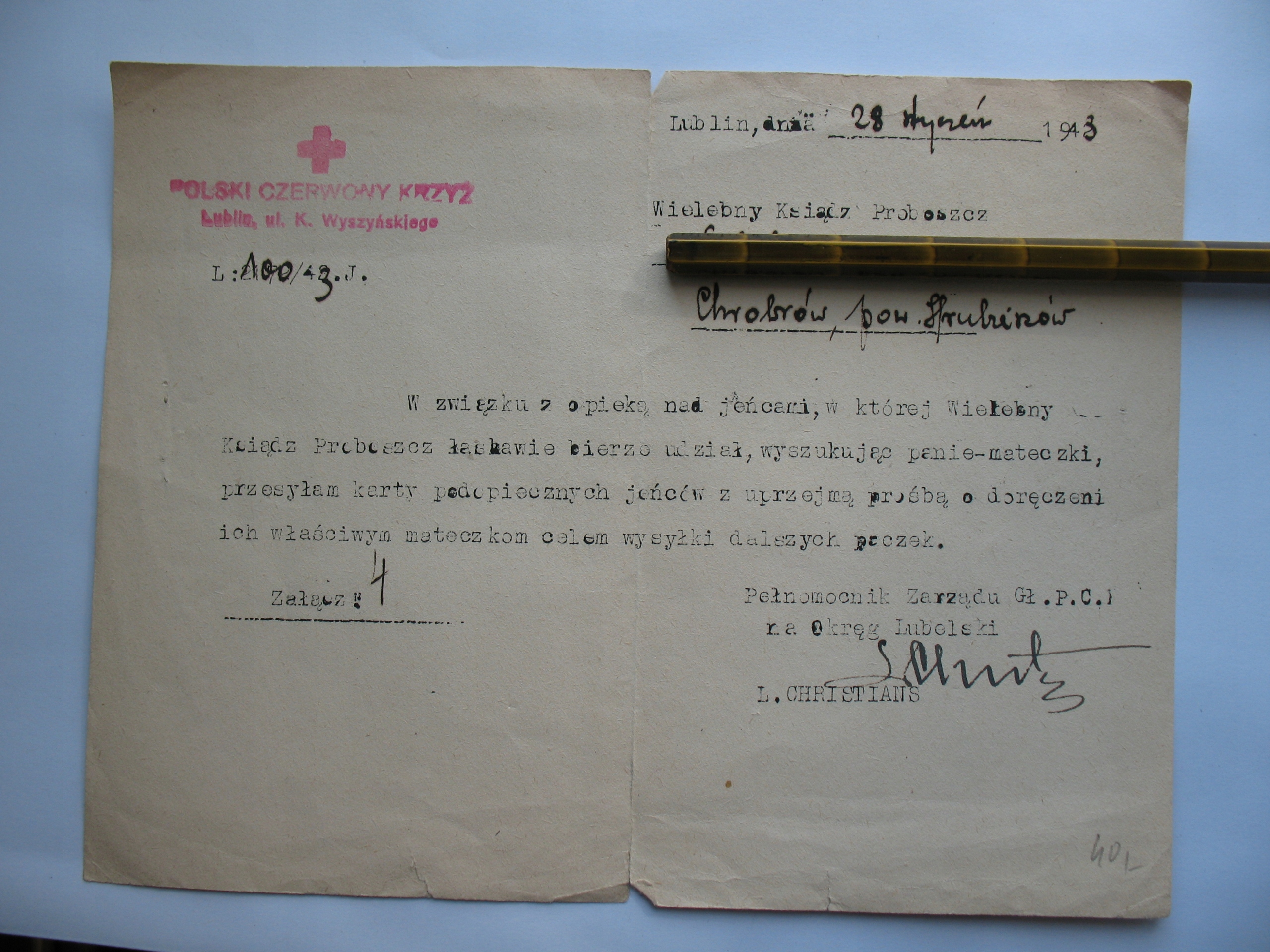 Г. Губерния Люблин Храбрый Польский Пастор Красного Креста Священник -Священник 1943