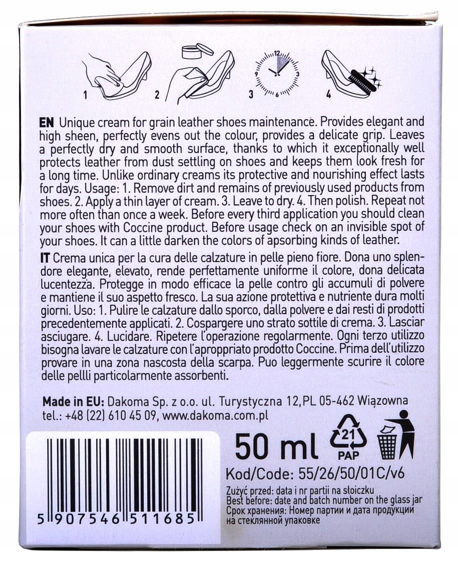 Приобретая «G12-11 Граната 38 Coccine Cream Elegance для обуви» данный товар из каталога «Пропитки для обуви» вы можете быть уверены, что после оформления заказа, доставки в Украину, вы получите именно то, что заказывали, в оговоренные сроки и европейского качества.