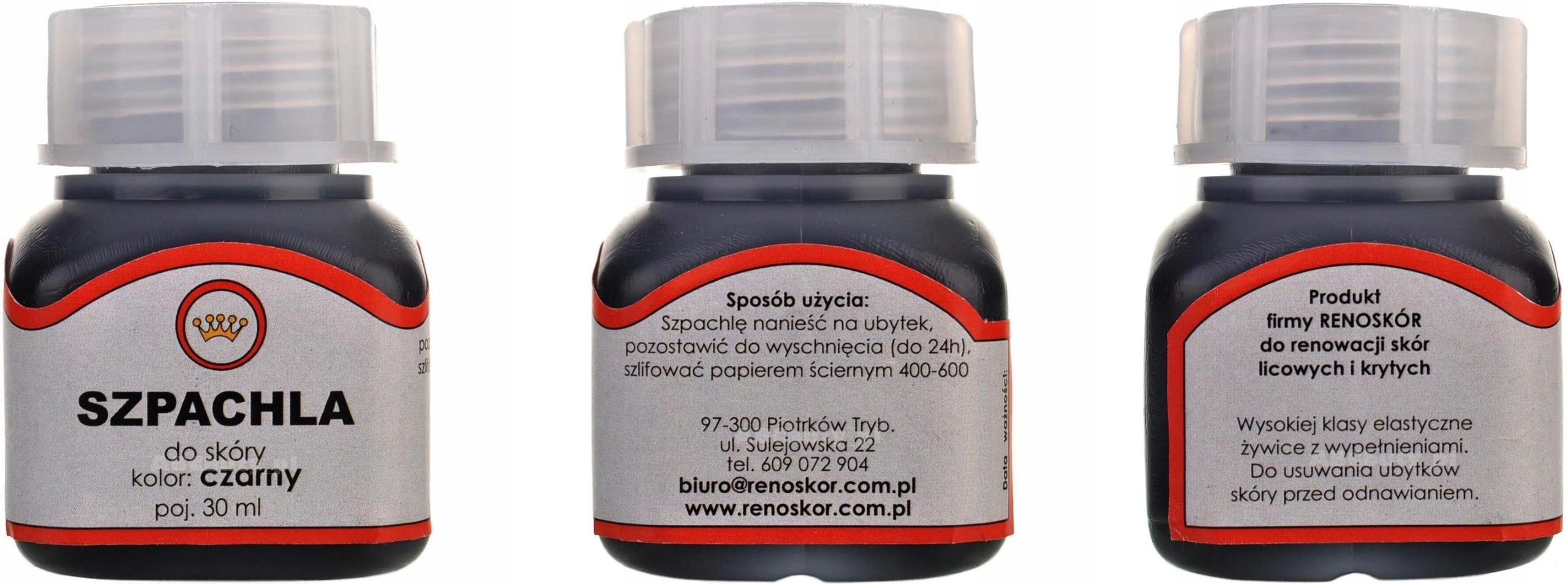 G12-76 ПОЛЬША Жидкая шпаклевка RENOSKÓR для обновления лицевой и обтянутой кожи - емкость 30 мл - ЧЕРНЫЙ цвет.