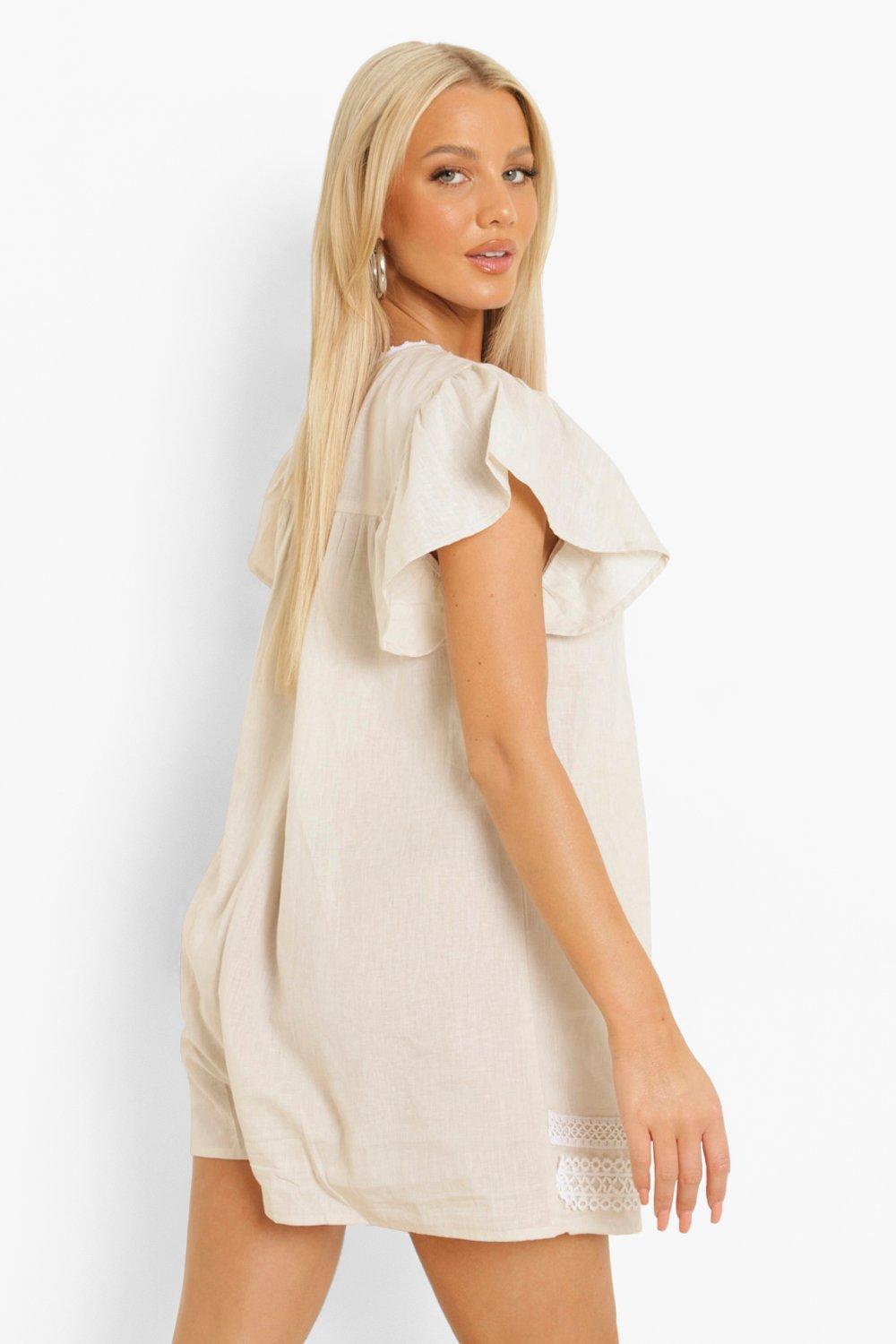 G16R004 КОРОТКИЙ КОМБІНЕЗОН ДЛЯ ВАГІТНОСТІ БЕЖЕВИЙ З ВИШИВКОЮ BOOHOO 42
