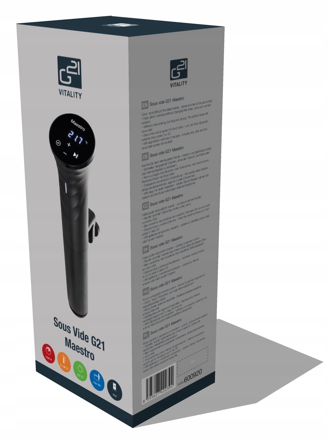 Оплачивая «G21 Су Вид Маэстро» данный товар из каталога «Устройства для sous vide» вы можете быть уверены, что после оформления заказа, доставки в Украину, вы получите именно то, что заказывали, в оговоренные сроки и европейского качества.