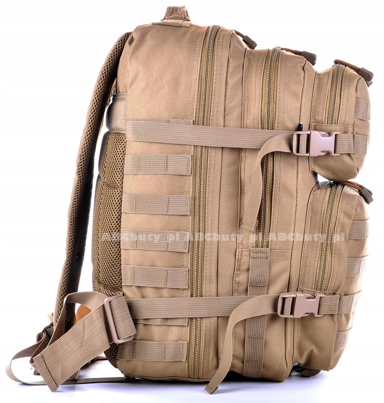 По бокам рюкзака расположены четыре нейлоновых ремня с пряжками, позволяющими легко увеличивать/уменьшать рюкзак.