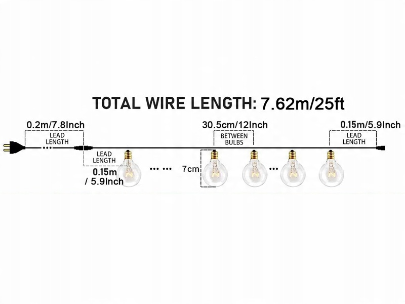 Название продукта: G40 вольфрамовый евро с заглушкой, 25 светильников, 7,62 м