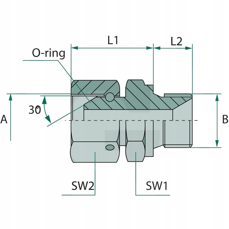 • Соединение 2: Цилиндрическая внутренняя нить, 30 ° герметичный конус