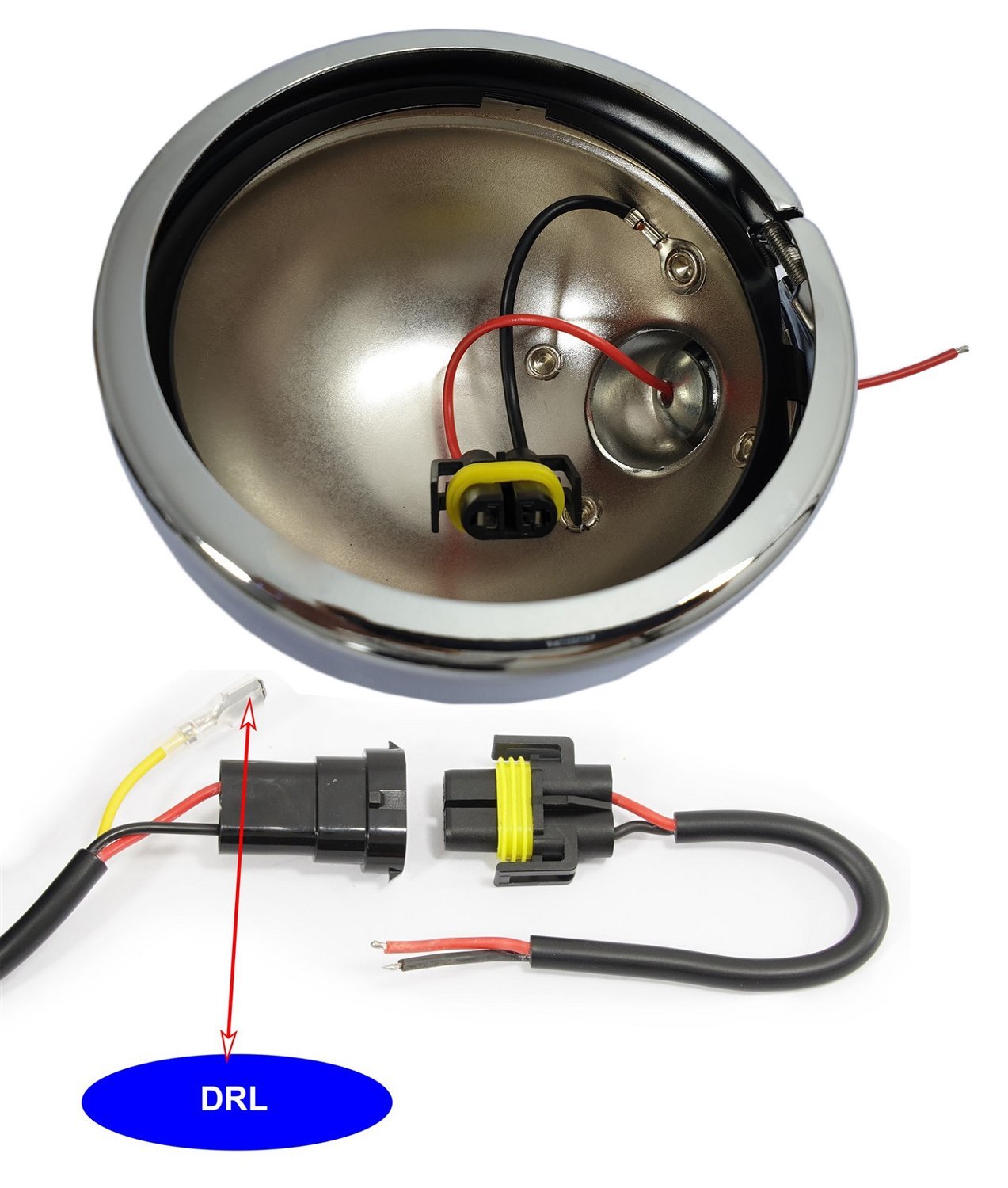 - Каждый абажур имеет заземляющий кабель, подключенный к вилке, водонепроницаемую вилку (совместимую со вилками 4,5-дюймовых светодиодных ламп) и кабель, выведенный через винт, который следует подключить к установке на мотоцикле или к выключателю лампы.