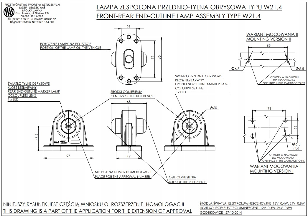 Габаритний ліхтар передня задня WAŚ LEFT 137L
