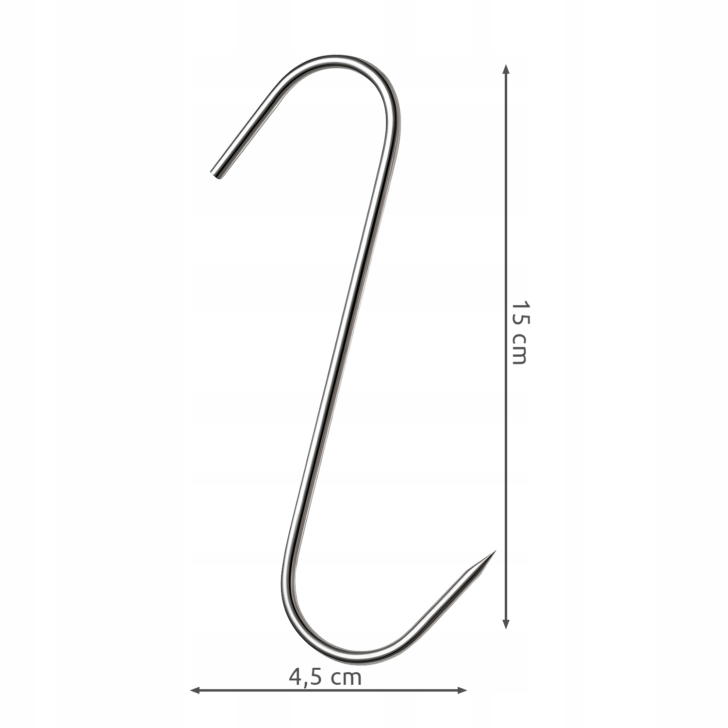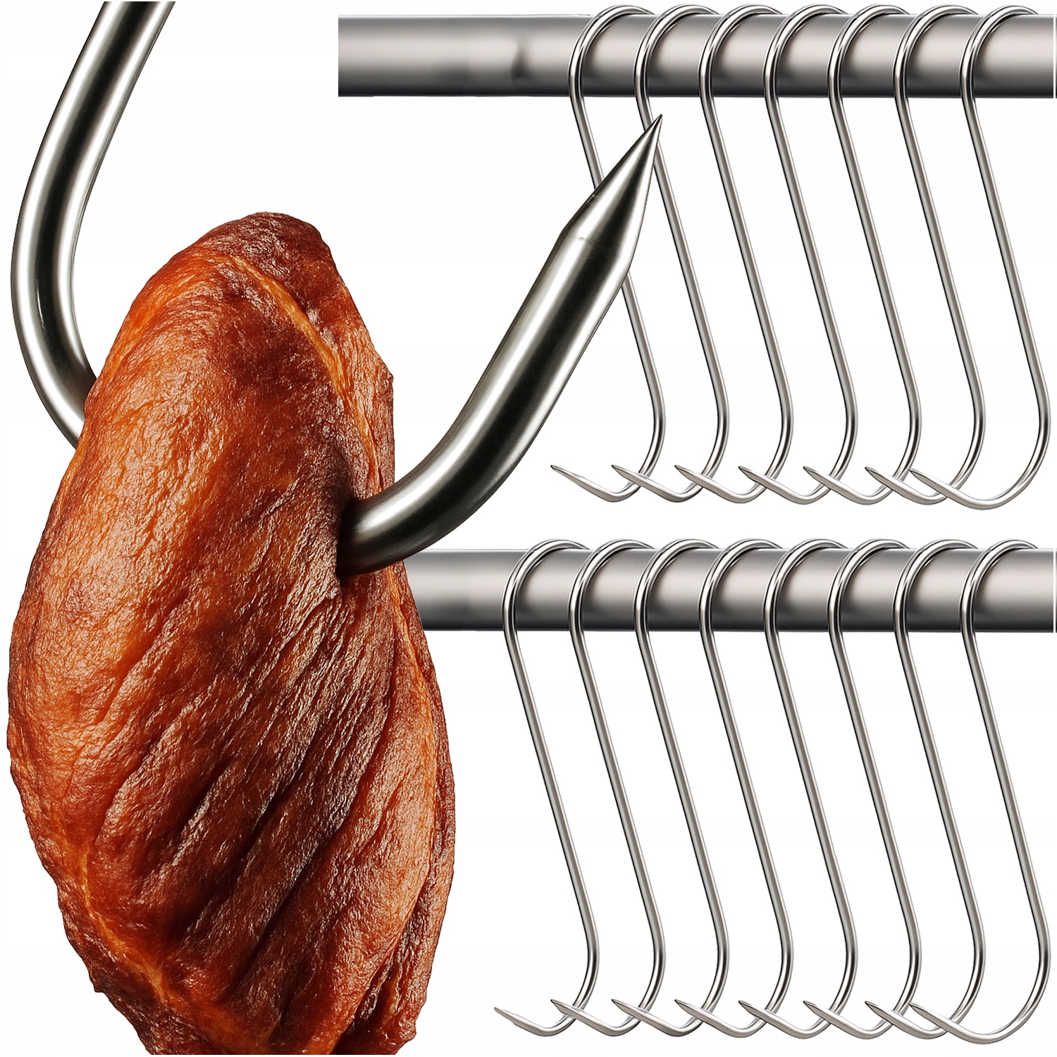 Размеры заставляют рыбные крючки для подвески в стандартном саду, электрическом, газовом или бочках -дымке b>. Вы можете повесить на них разные виды мяса - от небольших колбас до больших кусочков ветчины или свинины. Благодаря этому вам не нужно беспокоиться о сопоставлении - это универсальные курительные крючки, которые будут работать в каждой коптильнике.