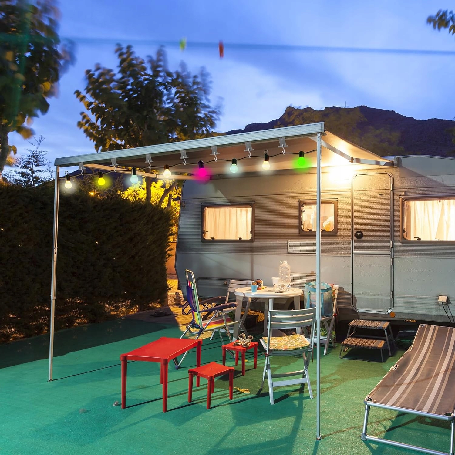 💪💪 Простота в использовании: держатель фонаря кемпингового тента может автоматически перемещаться к каналам солнцезащитного тента автофургона, и вы также можете повесить что-нибудь прямо на крючки. Легко собирать и разбирать, не занимает много времени.