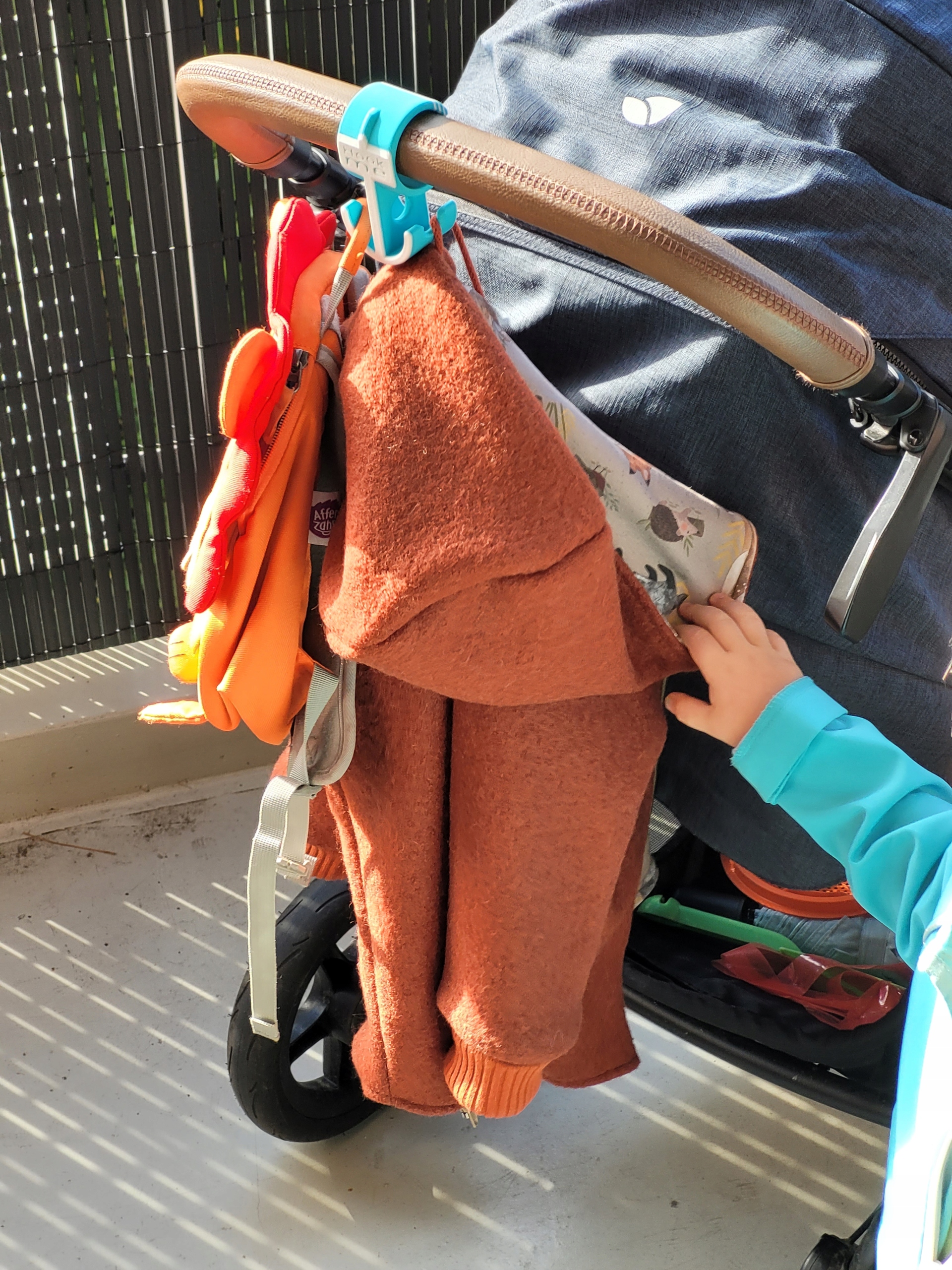 3️⃣ Экономия места — аксессуары вешаются сбоку от коляски, а не в корзине внизу.