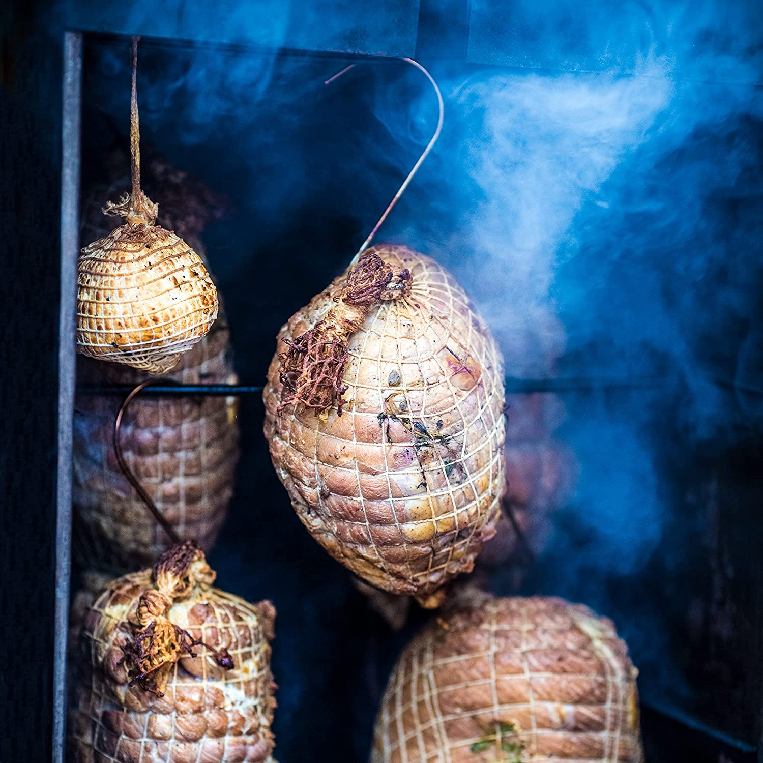 <ул>Копильный крючок для копчения различных видов мяса и колбасных изделий. Используем крючки, вставляя лезвие в кусок мяса и подвешивая его на перекладину в коптильне