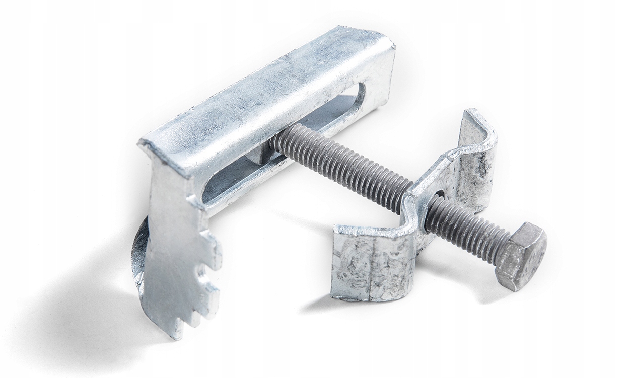 С С помощью комплекта можно монтировать решетки на несущую конструкцию из стальных профилей. Изделие подходит для решеток со стандартным шагом ячеек, т.е. 33х33, 34х38.