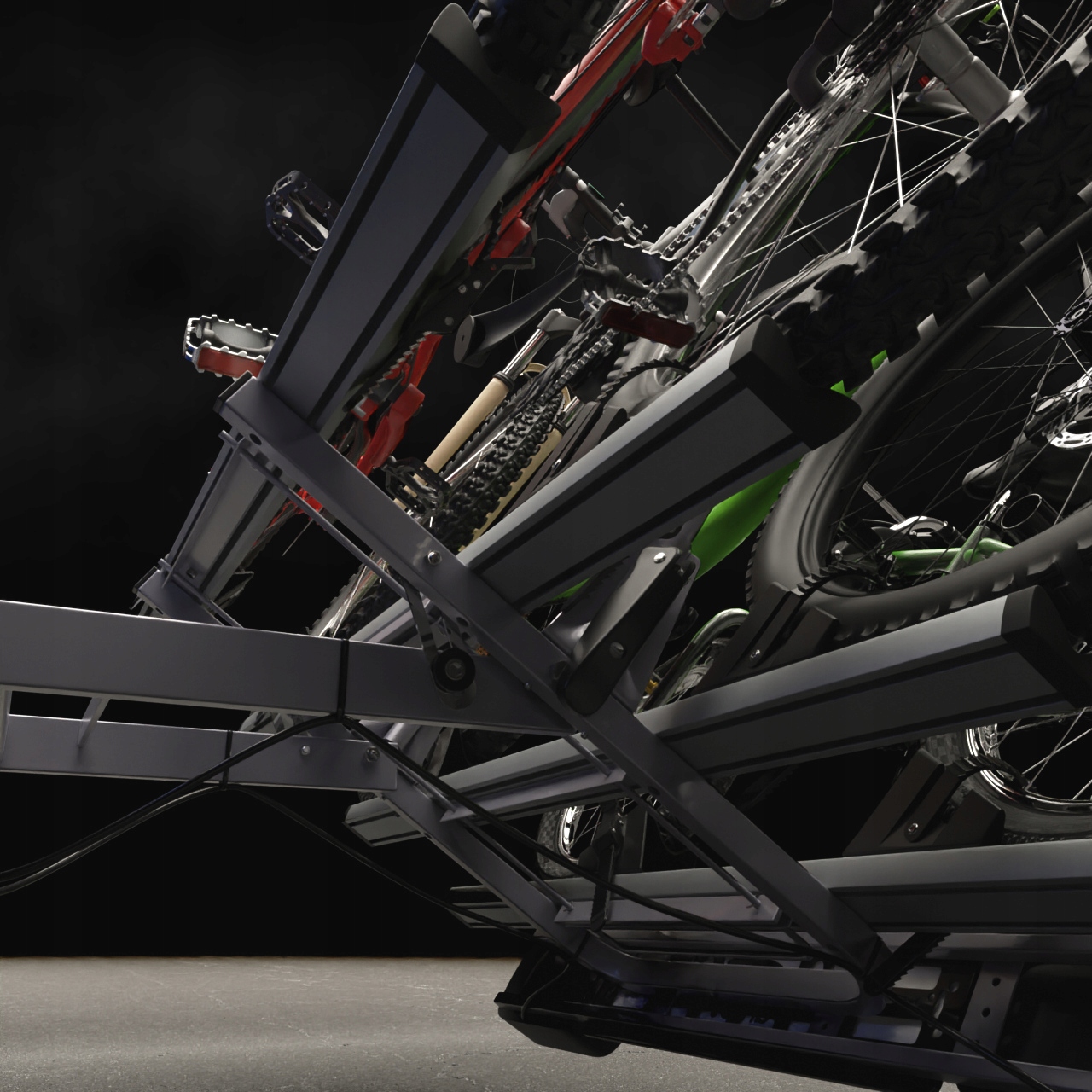 - Функция наклона платформы вниз с велосипедами позволяет открыть багажник автомобиля, не снимая велосипеды в большинстве автомобилей.
