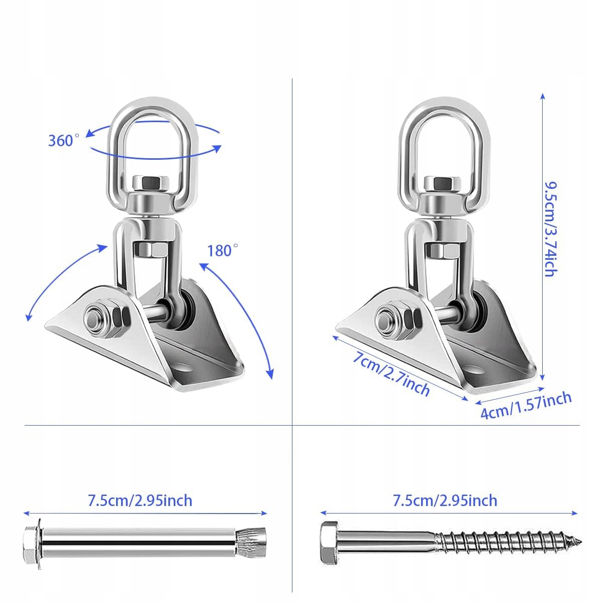 Потолочный крюк для свинга на 360 ° пружин. Вращаемая потолочная ручка из нержавеющей стали с 2 карабинерами до гамака, боксерская сумка, полотенце для йоги (серебро) h1>