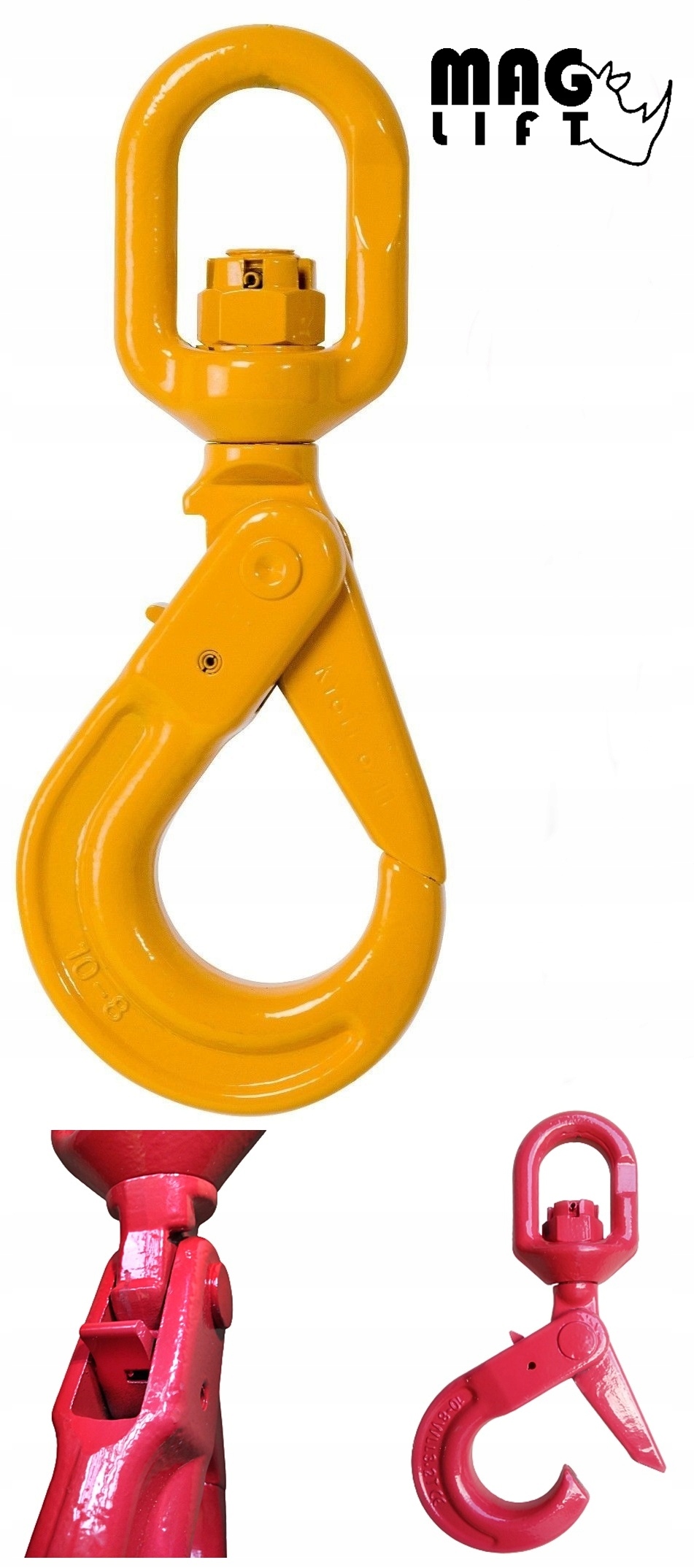 ИСПОЛНЕНИЕ: Крюк с поворотным звеном поворотного типа на подшипнике скольжения позволяет ему свободно вращаться вокруг собственной оси с возможностью компенсации осевого люфта. Крюк автоматически фиксируется при начале подъема и имеет защелку, предотвращающую раскрытие крюка. Крюк изготовлен из кованой легированной стали класса прочности 8. Крюк оснащен замком, который предотвращает расстегивание веревки или другого сухожилия, что делает его чрезвычайно безопасным в использовании.