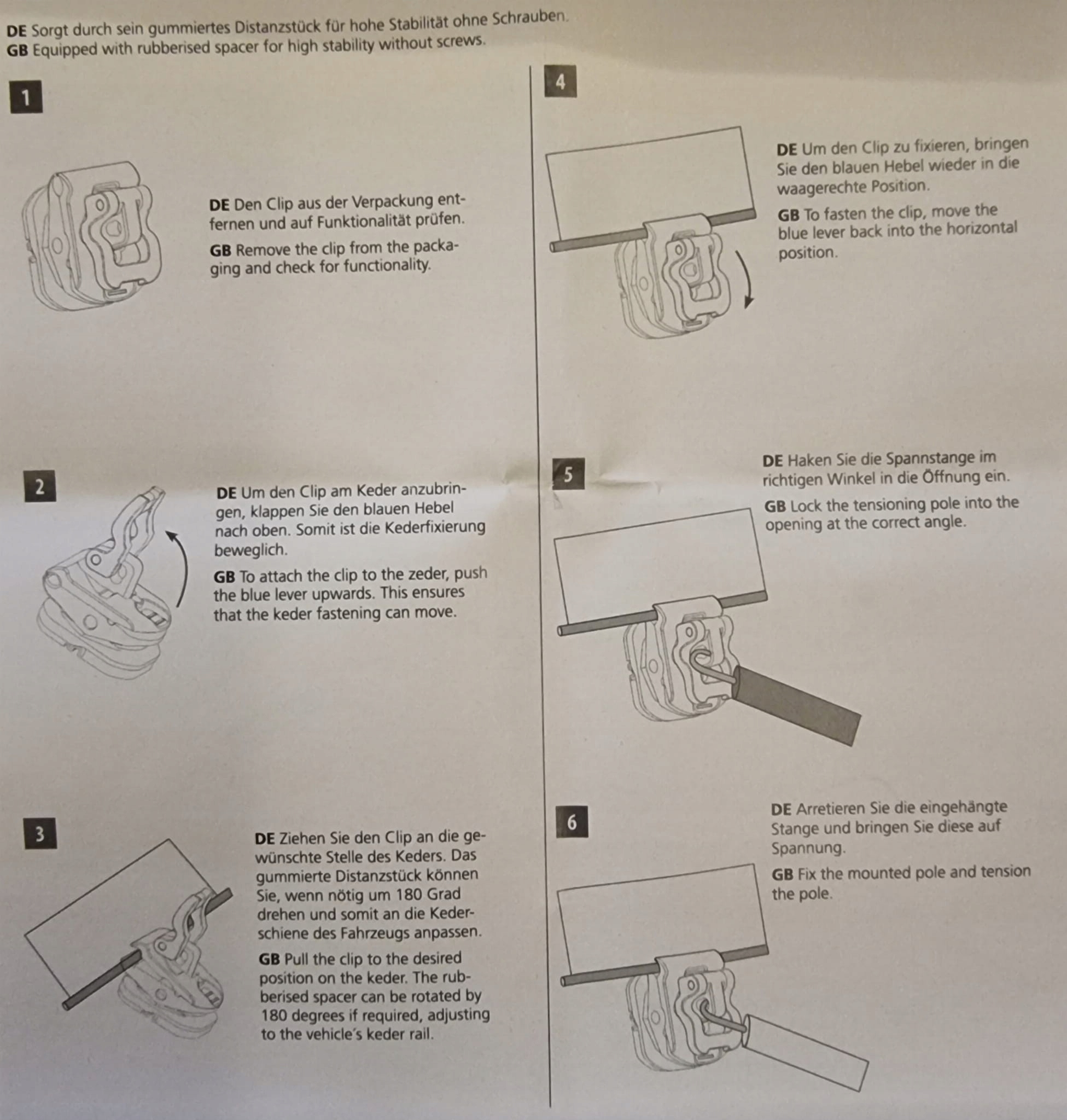 Безвинтовые крючки для крепления тамбура, 3 штуки от известной компании Berger. Они позволяют установить тамбур/палатку без необходимости сверлить отверстия в прицепе. Для установки этих ручек в тамбуре необходим дополнительный кедра, в который вставляются ручки. Глубина дистанционной пластины составляет 10 мм. Может быть уменьшен до 6 мм, поэтому подходит для самых популярных автодомов.