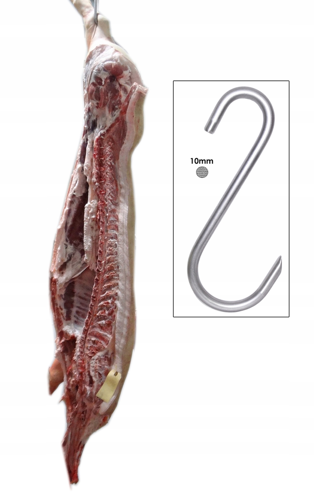 Крючок изготовлен из нержавеющей стали (легко содержать в чистоте) и состоит из стержня толщиной 10 мм.