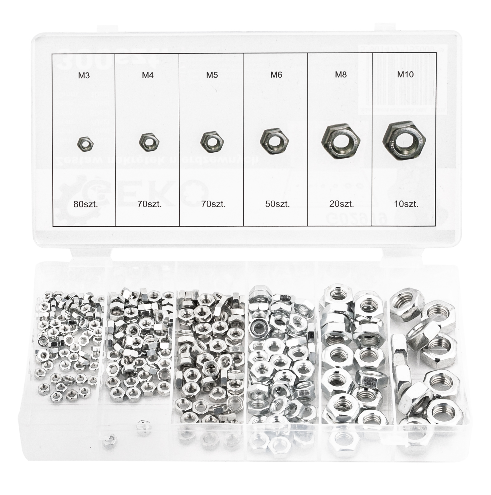 Все упаковано в удобную упаковку типа «сортер». Метрические гайки, нержавеющая сталь.