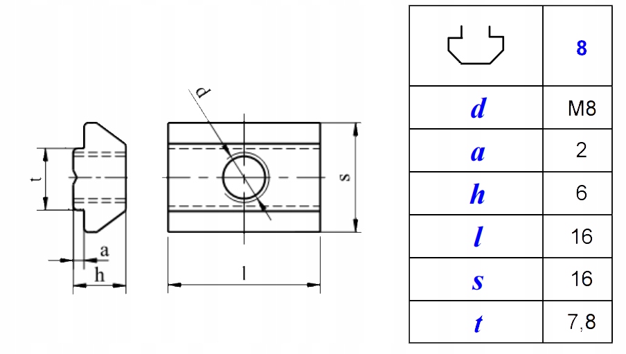 Конечно, при условии, что измерения согласуются. Профили 30x30 мм, 30x60 мм, 40x40 мм, 40x80 мм и 45x45 мм чаще всего имеют канавку N8 (около 8 мм). Высота гайки также важна - ее точные размеры приведены в таблице выше